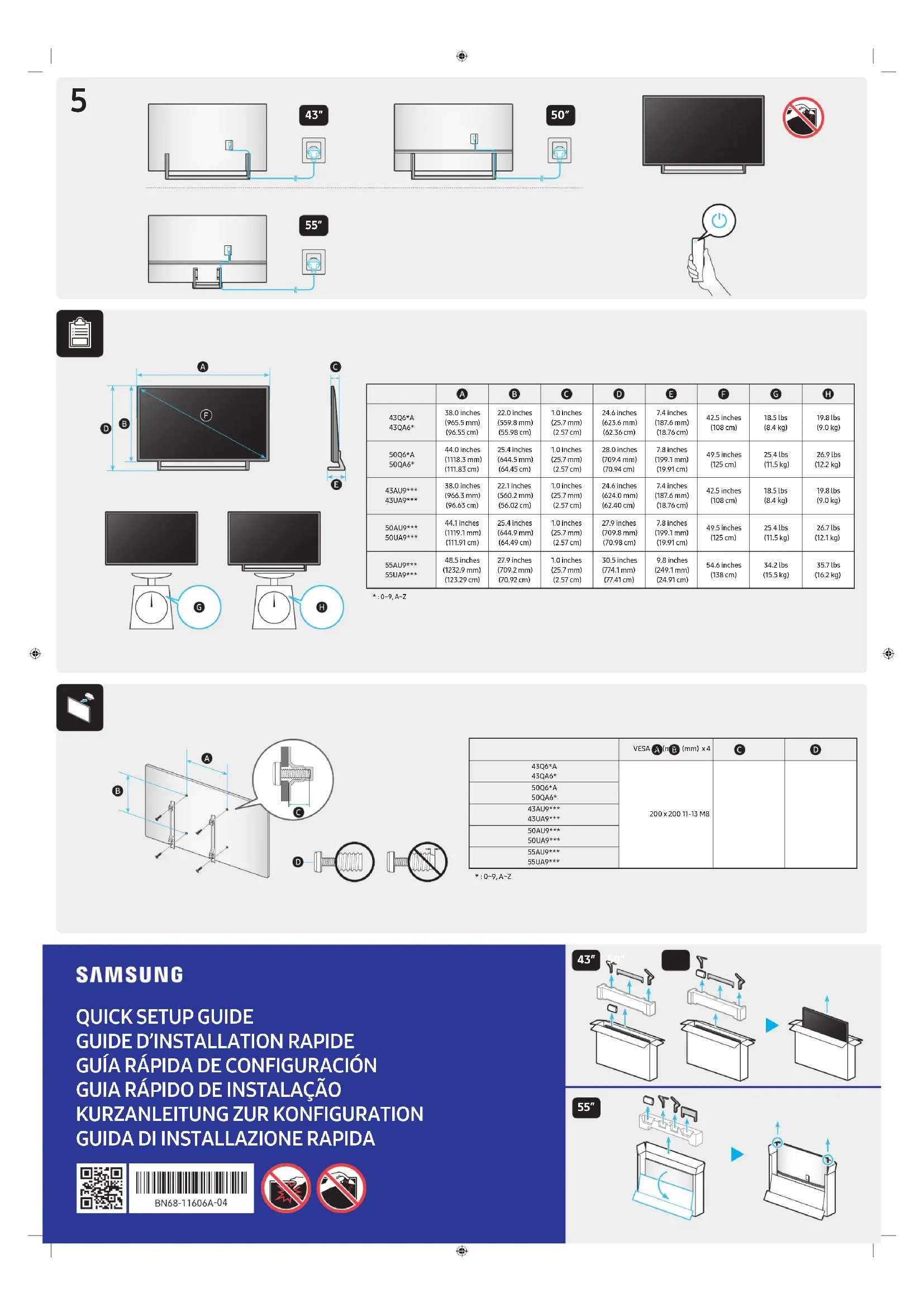 - : 0~9, A~Z 55″ 43″ 50″
