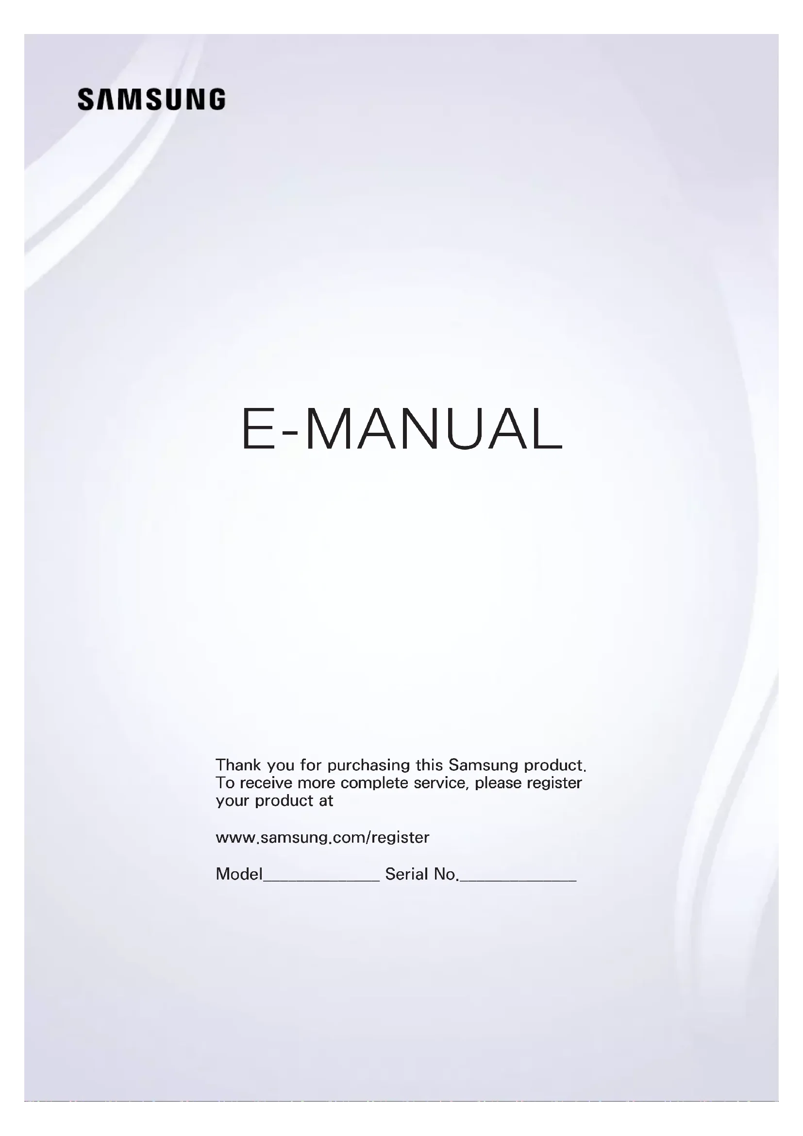 E-MANUAL Thank you for purchasing this Samsung product. To receive more complete service, please register your product at www.samsung.com/register Model______________ Serial No.______________Contents Guides de démarrage Utilisation de Smart Hub 1 Connexion à Internet 1 Configuration de Smart Hub 1 Utilisation de Smart Hub Commande vocale du téléviseur 2 Configuration de Reconnaissance vocale 3 Commande vocale du téléviseur Commande par mouvement du téléviseur 4 Configuration de Commande par mouv. 5 Contrôle du téléviseur à l'aide de gestes Utilisation du Samsung Smart Control 6 Utilisation du téléviseur avec le bouton POINTER 7 Configuration du Samsung Smart Control 7 Pairage du téléviseur au Samsung Smart Control Amélioration de l'expérience visuelle des événements sportifs 8 Activation de la fonction Mode Sport Modification des chaînes 9 Activation de la fonction Modifier la chaîne 9 Réorganisation ou suppression de chaînes Lecture de plusieurs écrans Connexions Raccordement d'une antenne (Antenne) Connexion à Internet 12 Mise en place d'une connexion câblée à Internet 13 Mise en place d'une connexion sans fil à Internet Connexion à un réseau au moyen d'un dongle mobile Résolution des problèmes de connectivité Internet 16 Résolution des problèmes de connectivité Internet câblée 17 Résolution des problèmes de connectivité Internet sans fil Connexion de périphériques vidéo 18 Connexion à l'aide d'un câble HDMI 19 Connexion à l'aide d'un câble composant 20 Connexion à l'aide d'un câble composite (A/V) Connexions d'entrée et de sortie audio 21 Connexion à l'aide d'un câble HDMI (ARC) 22 Connexion à l'aide d'un câble audio numérique (optique) 22 Branchement d'un casque Connexion à un ordinateur 23 Connexion via le port HDMI 24 Connexion à l'aide d'un câble HDMI vers DVI 24 Connexion via votre réseau domestique Connexion d'un périphérique mobile 25 Connexion à l'aide d'un câble MHL vers HDMI 26 Utilisation de Réplication de l'écran 27 Connexion de périphériques mobiles sans routeur sans fil (Wi-Fi Direct) 28 Connexion d'un périphérique mobile via Samsung Smart View Pairage d'un ordinateur portable et du téléviseur - Mise en miroir de PC sans fil (ou KINO TV) Modification du signal d'entrée avec des périphériques externes Remarques sur la connexion 30 Remarque sur la connexion HDMI 31 Remarque sur la connexion des périphériques audio 31 Remarque sur la connexion des ordinateurs 32 Remarque sur la connexion des périphériques mobiles 32 Remarques concernant la connexion pour la mise en miroir de PC sans fil (ou KINO TV) Télécommande et périphériques À propos du Samsung Smart Control Utilisation du Samsung Smart Control 35 Utilisation du téléviseur avec le bouton POINTER 35 Utilisation du téléviseur avec les touches de direction et le bouton Entrer 36 Affichage et utilisation de la télécommande visuelle 37 Pairage du téléviseur au Samsung Smart Control IICommande des périphériques externes à l'aide de la télécommande du téléviseur - Utilisation de la télécommande universelle 38 Réglage de la télécommande universelle Commande du téléviseur à l'aide d'un clavier 39 Connexion d'un clavier 40 Utilisation du clavier Commande du téléviseur à l'aide d'une souris 41 Connexion d'une souris USB 41 Utilisation d'une souris Connexion d'une manette Bluetooth Saisie de texte à l'aide du clavier QWERTY à l'écran 43 Utilisation des autres fonctions Fonctions Smart Affichage de plusieurs écrans ou fonctions avec Multi-Link Screen 44 Utilisation de Multi-Link Screen Smart Hub 46 Supprimer ou épingler un élément dans le groupe Récente 46 Lancement automatique de Smart Hub 46 Test des connexions Smart Hub 47 Utilisation du didacticiel Smart Hub 47 Réinitialisation de Smart Hub Utilisation de Smart Hub avec un Compte Samsung 48 Création d'un compte Samsung 49 Ouverture d'un compte Samsung 49 Association de votre compte Samsung à vos comptes de services externes 50 Modification et ajout d'informations à un compte Samsung 50 Suppression d'un compte Samsung du téléviseur Utilisation du service GAMES 51 Gestion des jeux via le menu contextuel Options 51 Affichage de l'écran d'informations détaillées 52 Installation et exécution d'un jeu 52 Gestion des jeux téléchargés ou achetés Utilisation du service Mes Applications 54 Gestion des applications téléchargées avec le menu contextuel Options 55 Installation d'une application 55 Activation des mises à jour automatiques des applications 55 Suppression d'une application du téléviseur 56 Déplacement des applications 56 Verrouillage et déverrouillage des applications 56 Mise à jour des applications 56 Réorganisation des applications 56 Notation des applications achetées 56 Utilisation des autres caractéristiques et fonctions de l'application Utilisation de l'e-Manual 57 Lancement du manuel électronique 57 Utilisation des boutons du manuel électronique Utilisation du navigateur Web. 58 Préférences de navigation Utilisation du service MON CONTENU 59 À lire avant de lire du contenu multimédia 60 Lecture de contenu multimédia sur un ordinateur ou un périphérique mobile 60 Lecture de contenu multimédia enregistré sur un périphérique USB 61 Boutons et fonctions disponibles pendant le visionnage de photos 63 Boutons et fonctions disponibles pendant le visionnage de vidéos 65 Boutons et fonctions disponibles pendant la lecture de musique 66 Écoute de musique en qualité HD 66 Fonctions de l'écran de liste de contenu multimédia Utilisation du service NewsON 67 Actualités 67 Météo Commande vocale du téléviseur 69 À lire avant d'utiliser la fonction de reconnaissance vocale 69 Apprentissage des principes de base de la reconnaissance vocale 70 Utilisation de la reconnaissance vocale impérative 70 Utilisation de la reconnaissance vocale interactive à une courte distance 70 Utilisation du didacticiel de reconnaissance voca