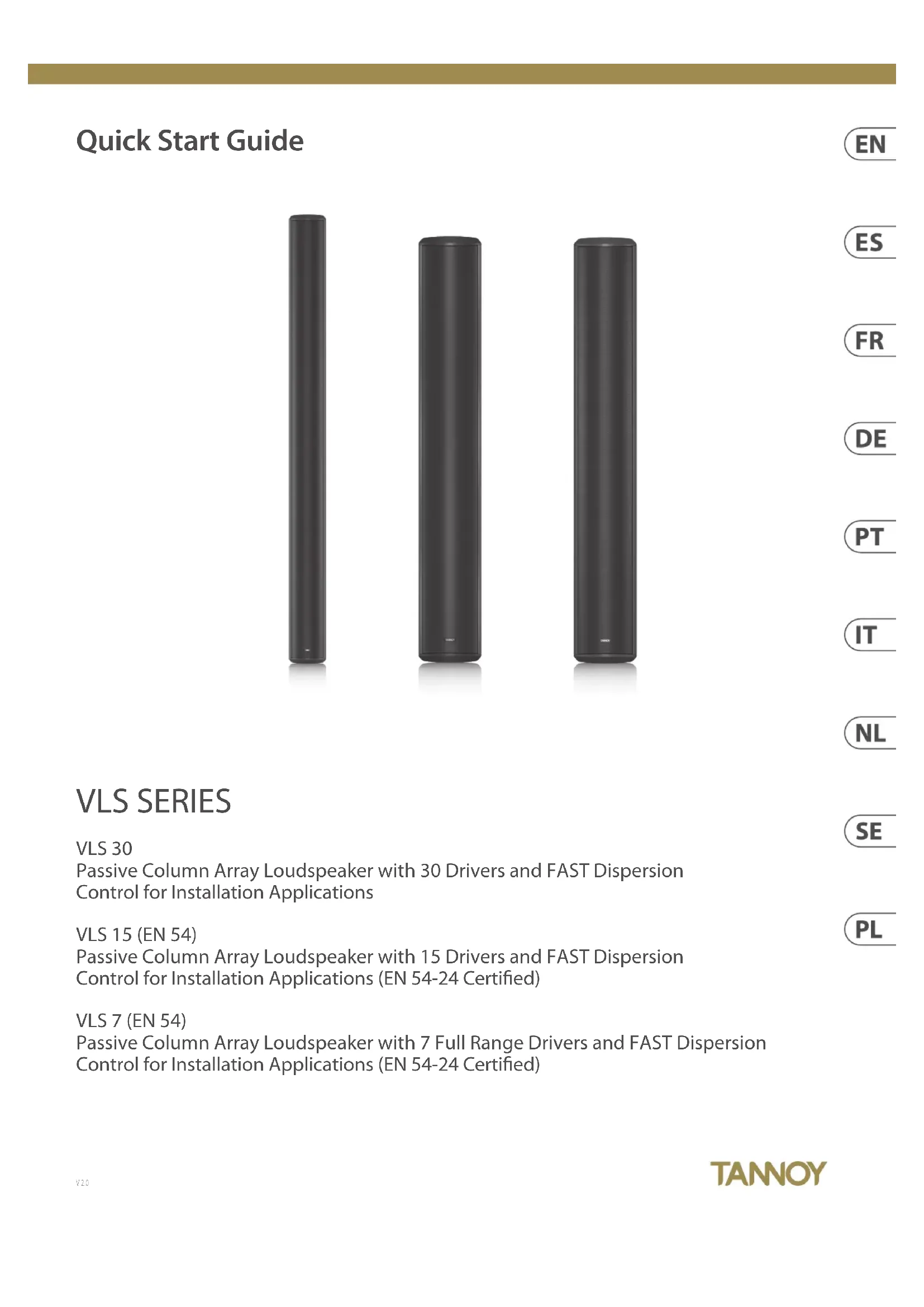 Téléchargez la notice de votre Haut-parleur au format PDF gratuitement ! Retrouvez votre notice VLS 7 - TANNOY et reprennez votre appareil électronique en main. Sur cette page sont publiés tous les documents nécessaires à l'utilisation de votre appareil VLS 7 de la marque TANNOY.