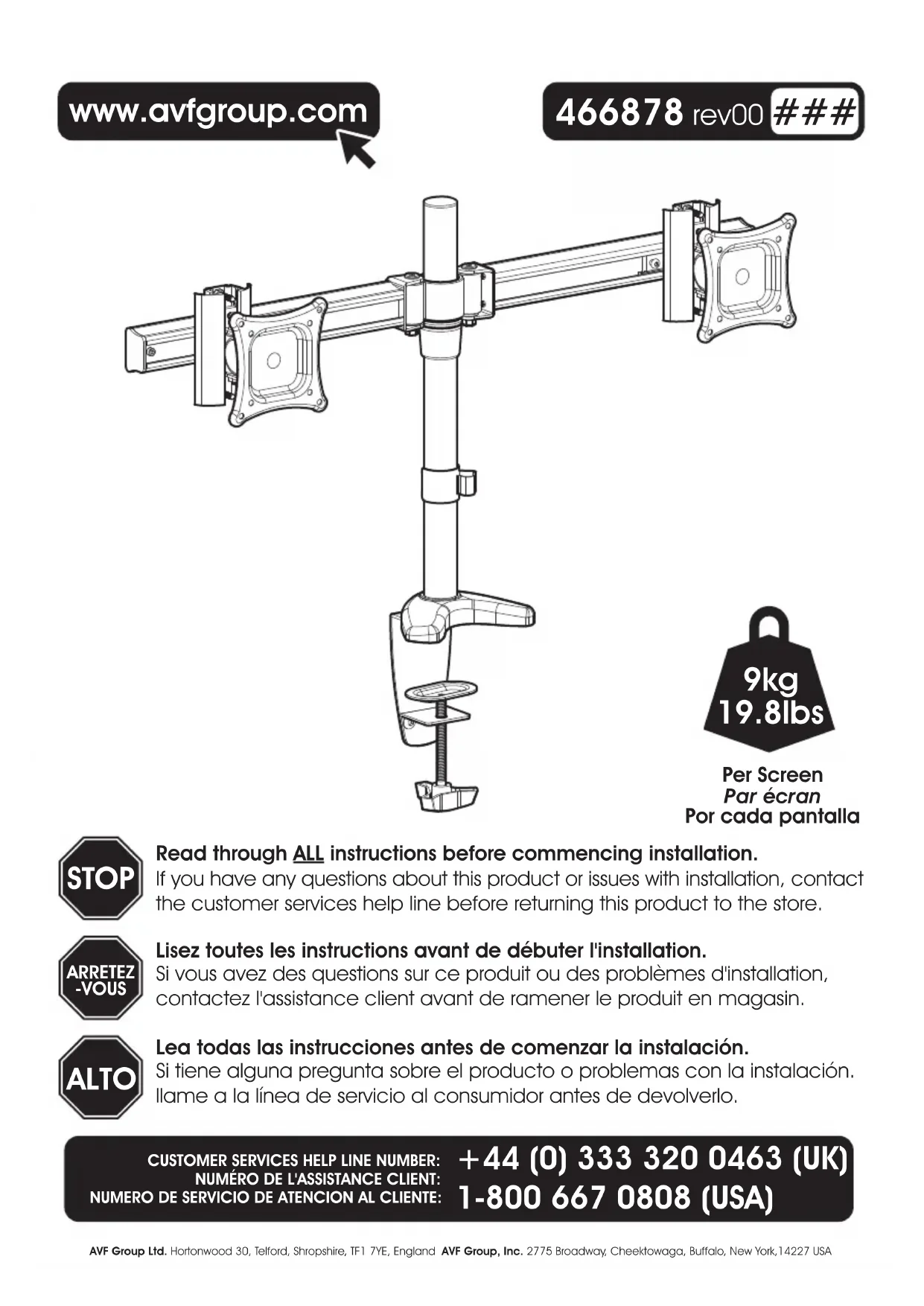 MRC2203A - Support d'écran AVF - Notice d'utilisation et mode d'emploi gratuit