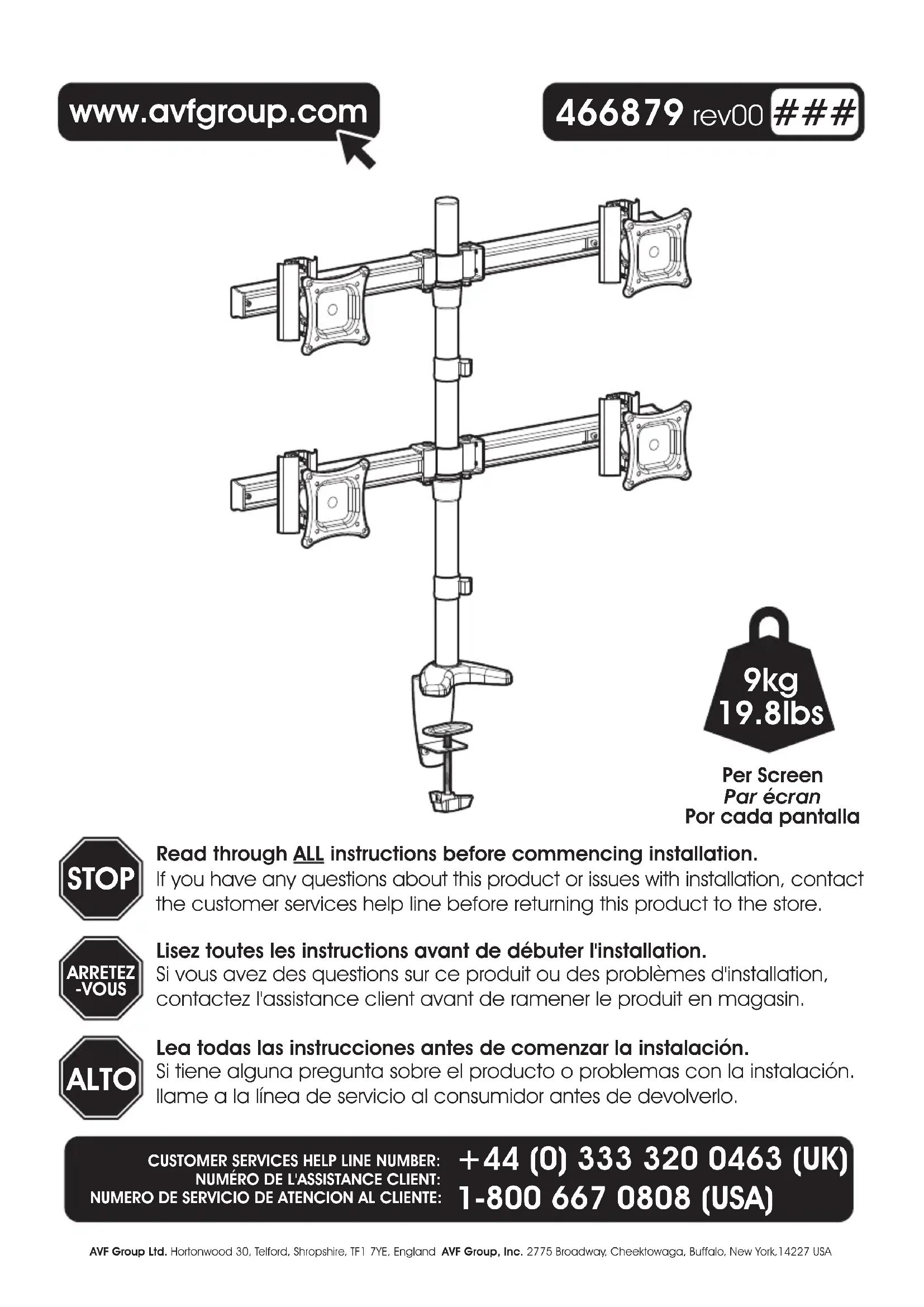 X 75, 100, 200mm Y 75, 100, 200mm TV Fixing Holes Trous de fixation TV Orificios de su TV para Fijar el Soporte If width X is not equal to 75, 100 or 200mm or height Y is not equal to 75, 100 or 200mm STOP installation now and contact the customer help line Si la largeur X n'est pas égale à 75, 100 ou 200mm ou si la hauteur Y n'est pas égale à 75, 100 ou 200mm, ARRÊTER immédiatement l'installation et communiquez avec le service d'assistance à la clientèle Si el ancho X no es igual a 75, 100 o 200mm, o si la altura Y no es igual a 75, 100 o 200mm DETENGA en este momento la instalación y póngase en contacto con la línea de asistencia al cliente 75, 100 or 200 75, 100 or 200 75, 100 o 200 75, 100 o 200 75, 100 ou 200 75, 100 ou 200 If mounting material is less than 10mm or more than 76mm STOP installation now and contact the customer help line Si l'épaisseur du matériel de fixation est inférieure à 10 mm ou supérieure à 76 mm, CESSEZ l'installation immédiatement et communiquez avec le soutien technique Si el material de montaje es menor a 10 mm o más de 76 mm, DETENGA la instalación y contacte a la línea de ayuda de atención al cliente
