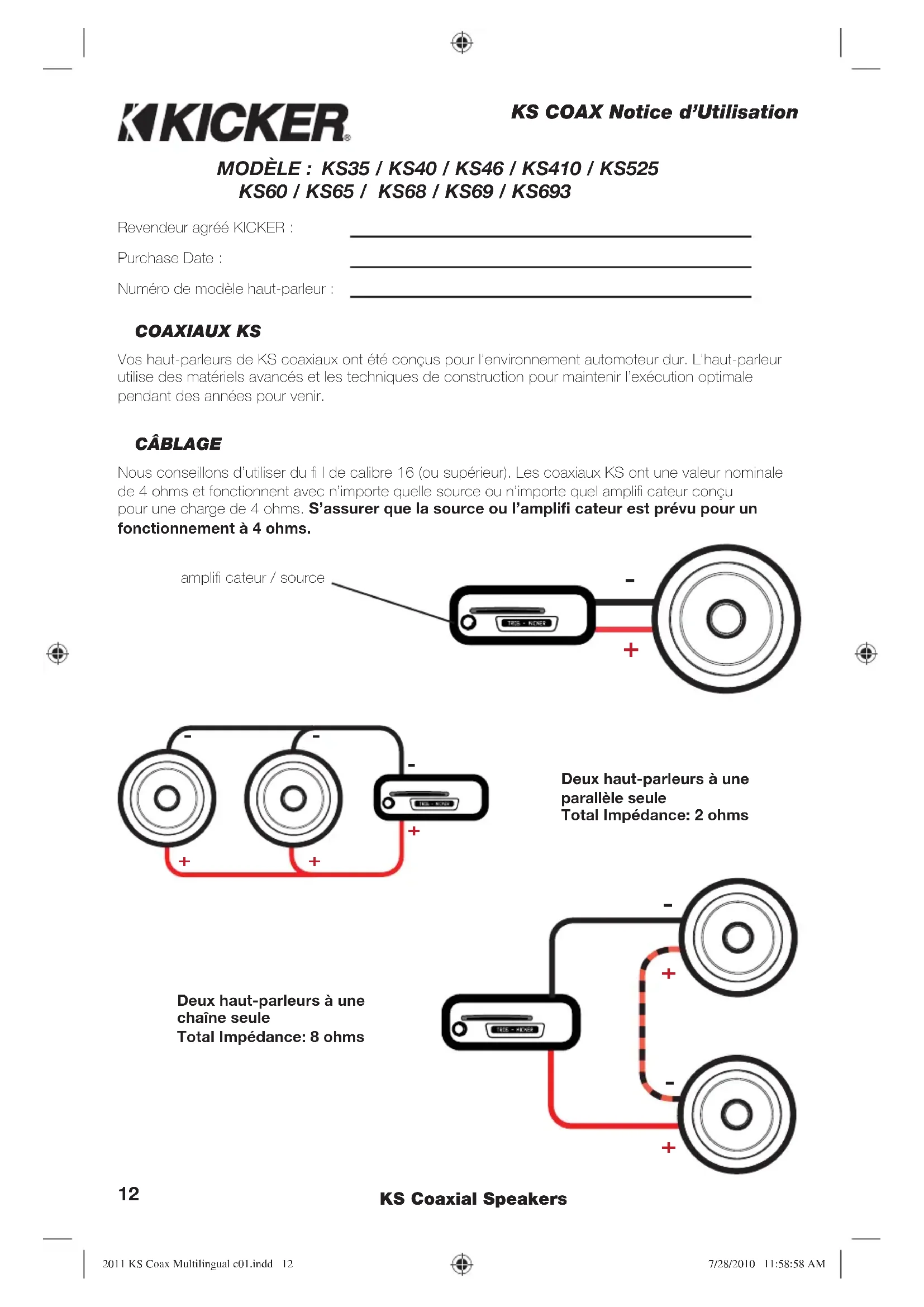 KS40 - Haut-parleur KICKER - Notice d'utilisation et mode d'emploi gratuit