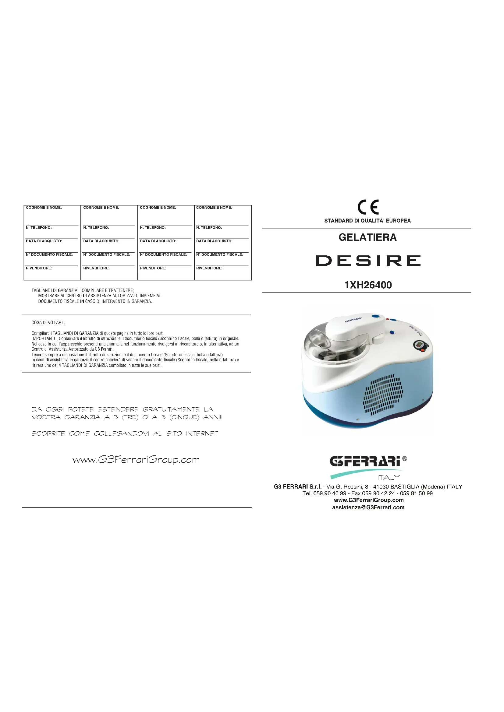 Desire - Machine à glace G3 Ferrari - Notice d'utilisation et mode d'emploi gratuit