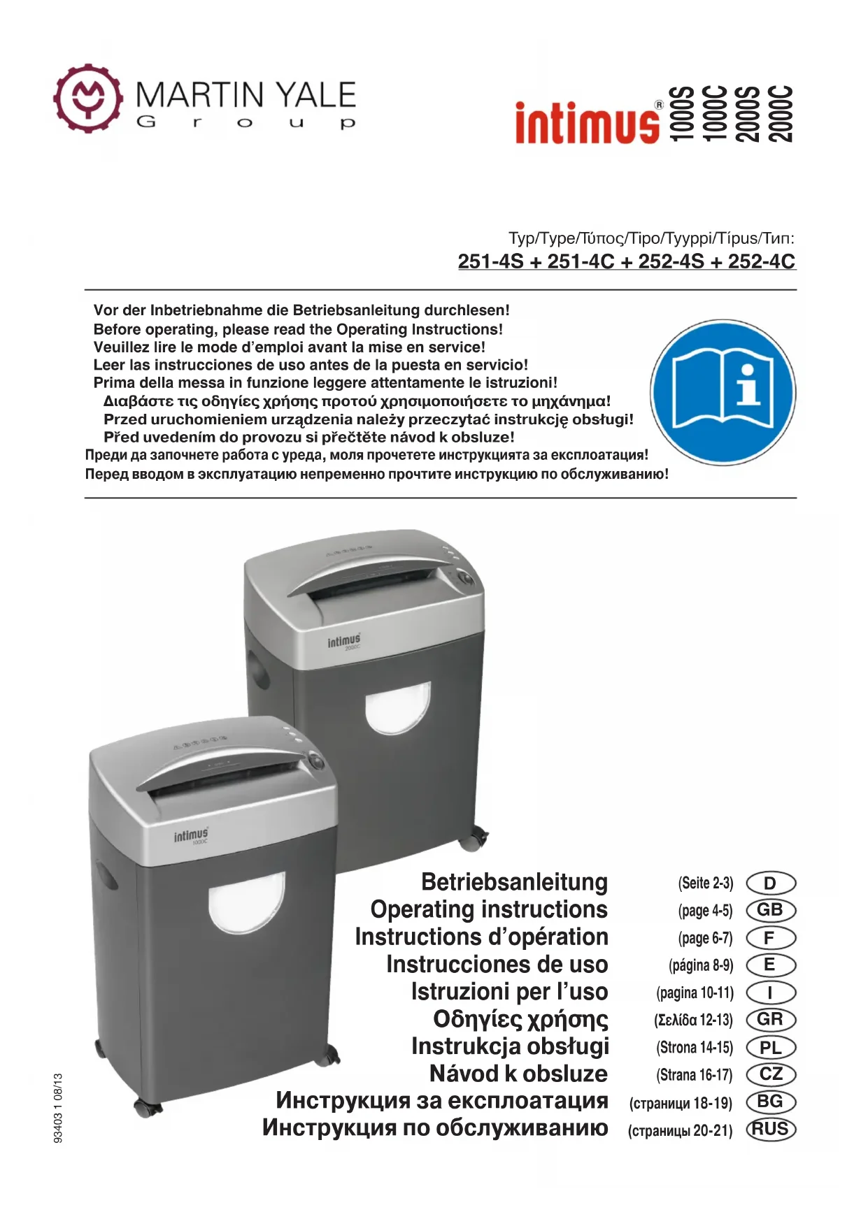 Téléchargez la notice de votre Destructeur de document au format PDF gratuitement ! Retrouvez votre notice 1000 S - Intimus et reprennez votre appareil électronique en main. Sur cette page sont publiés tous les documents nécessaires à l'utilisation de votre appareil 1000 S de la marque Intimus.