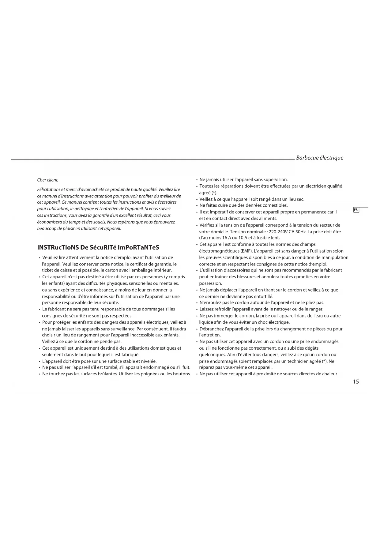 - Ne pas utiliser cet appareil à proximité de sources directes de chaleur. Barbecue électrique FR16