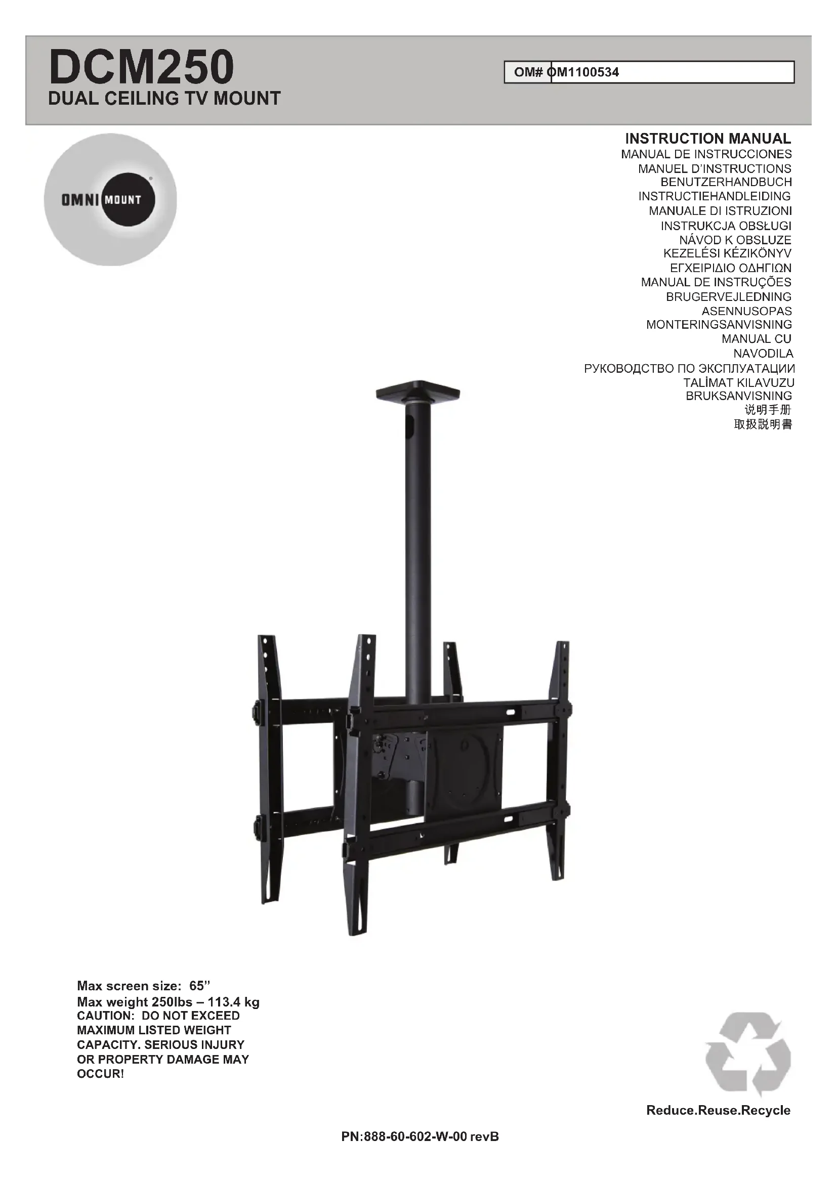 Retrouvez gratuitement la notice de l'appareil DCM250 OmniMount au format PDF.