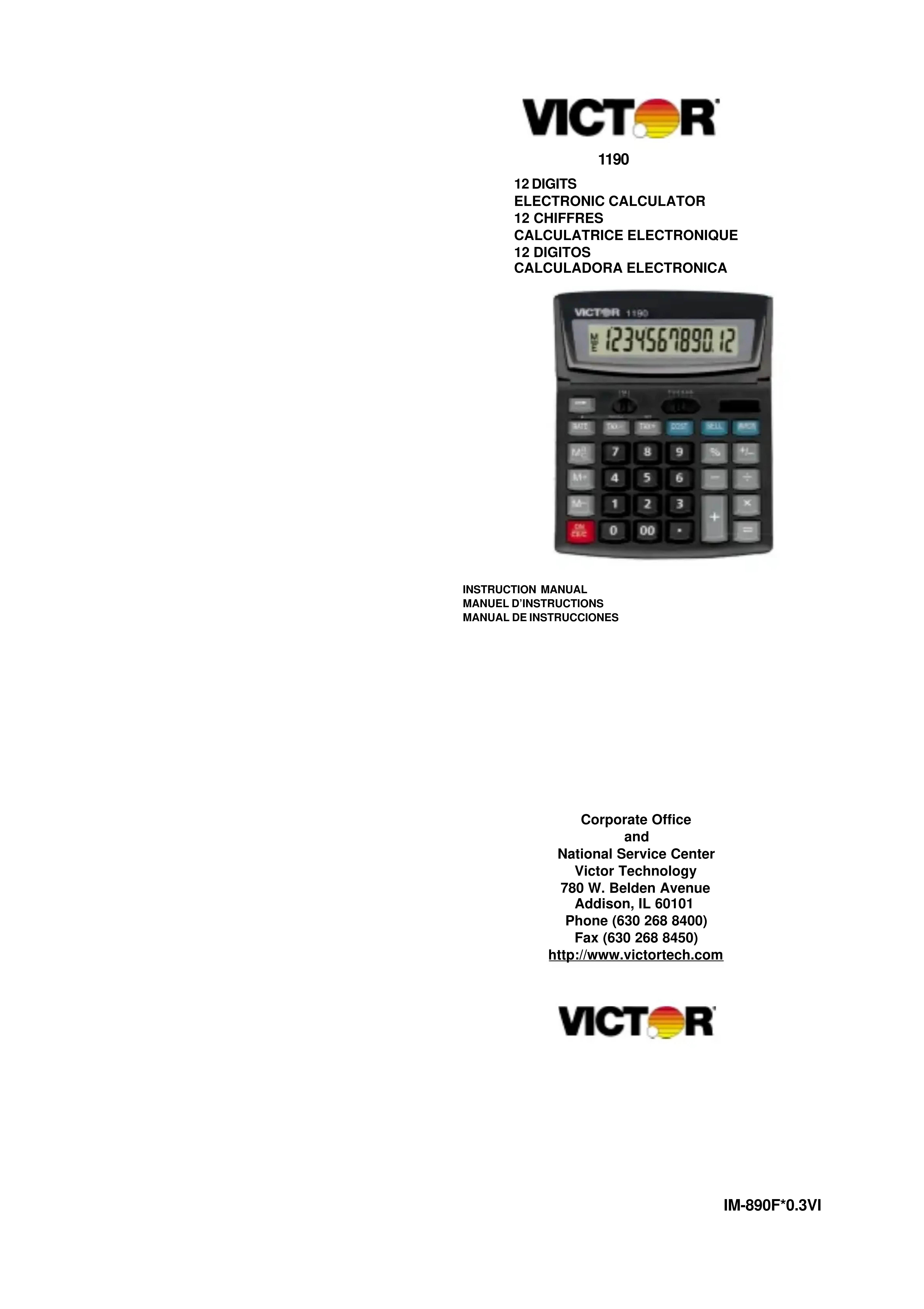 1190 - Calculatrice Victor Technology - Notice d'utilisation et mode d'emploi gratuit