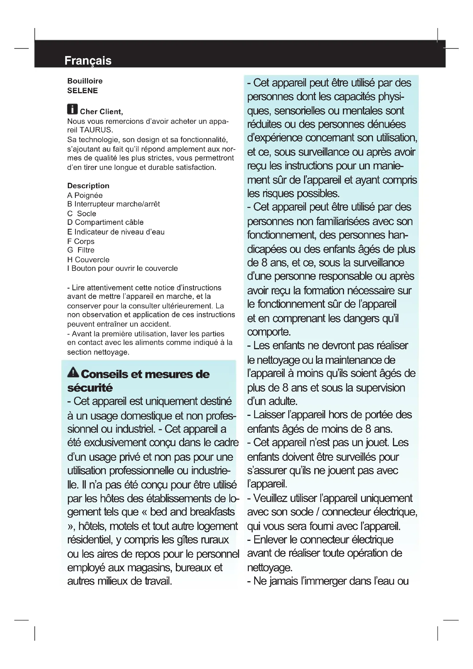 Selene - Bouilloire TAURUS - Notice d'utilisation et mode d'emploi gratuit