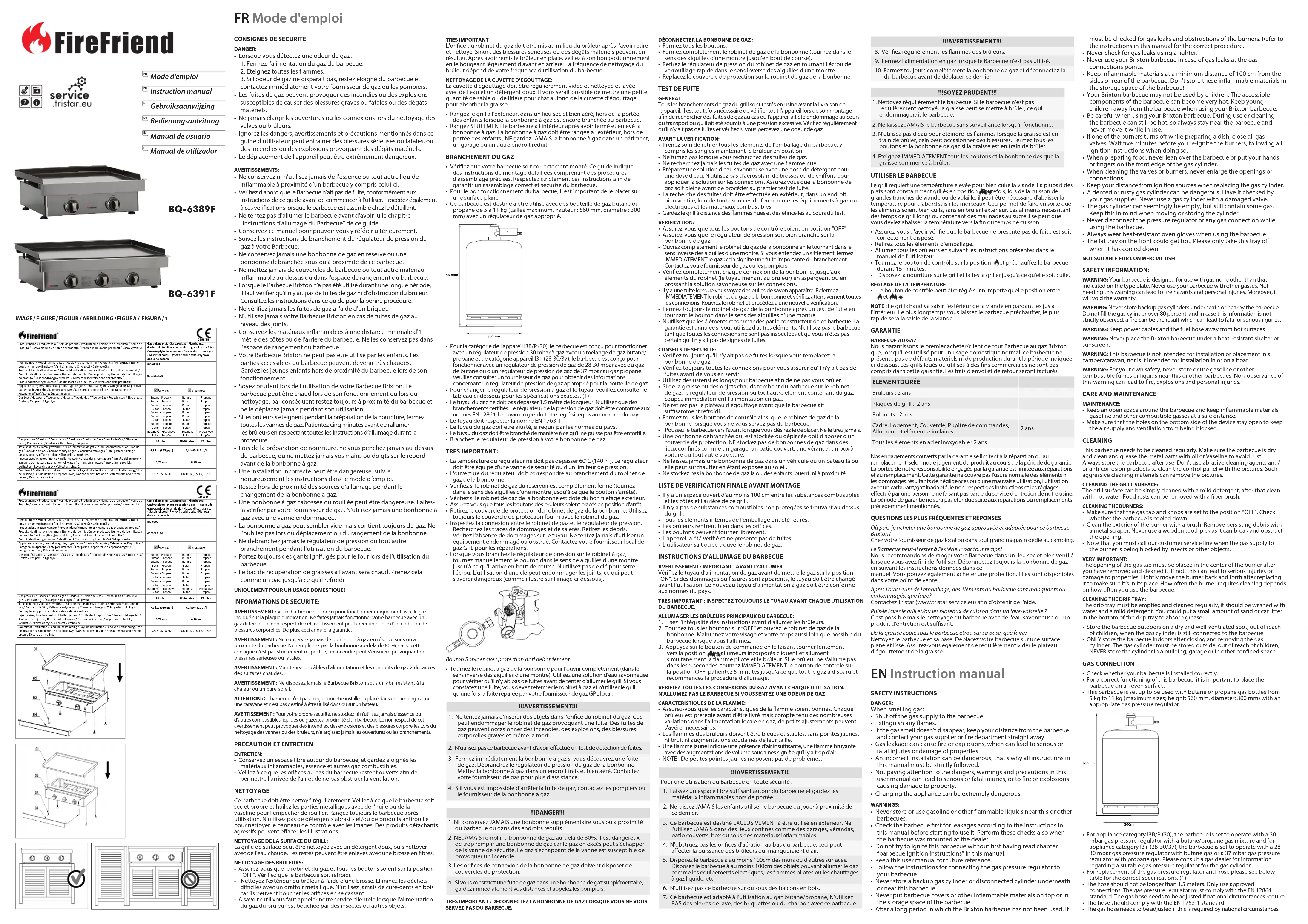 Téléchargez la notice de votre Barbecue au format PDF gratuitement ! Retrouvez votre notice BQ6389F - FireFriend et reprennez votre appareil électronique en main. Sur cette page sont publiés tous les documents nécessaires à l'utilisation de votre appareil BQ6389F de la marque FireFriend.