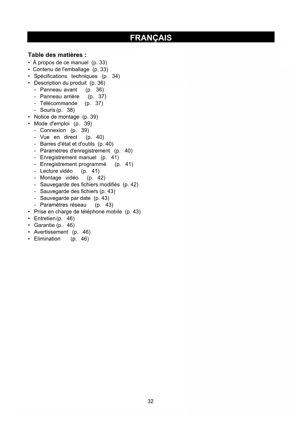 - A vertissement (p. 46)