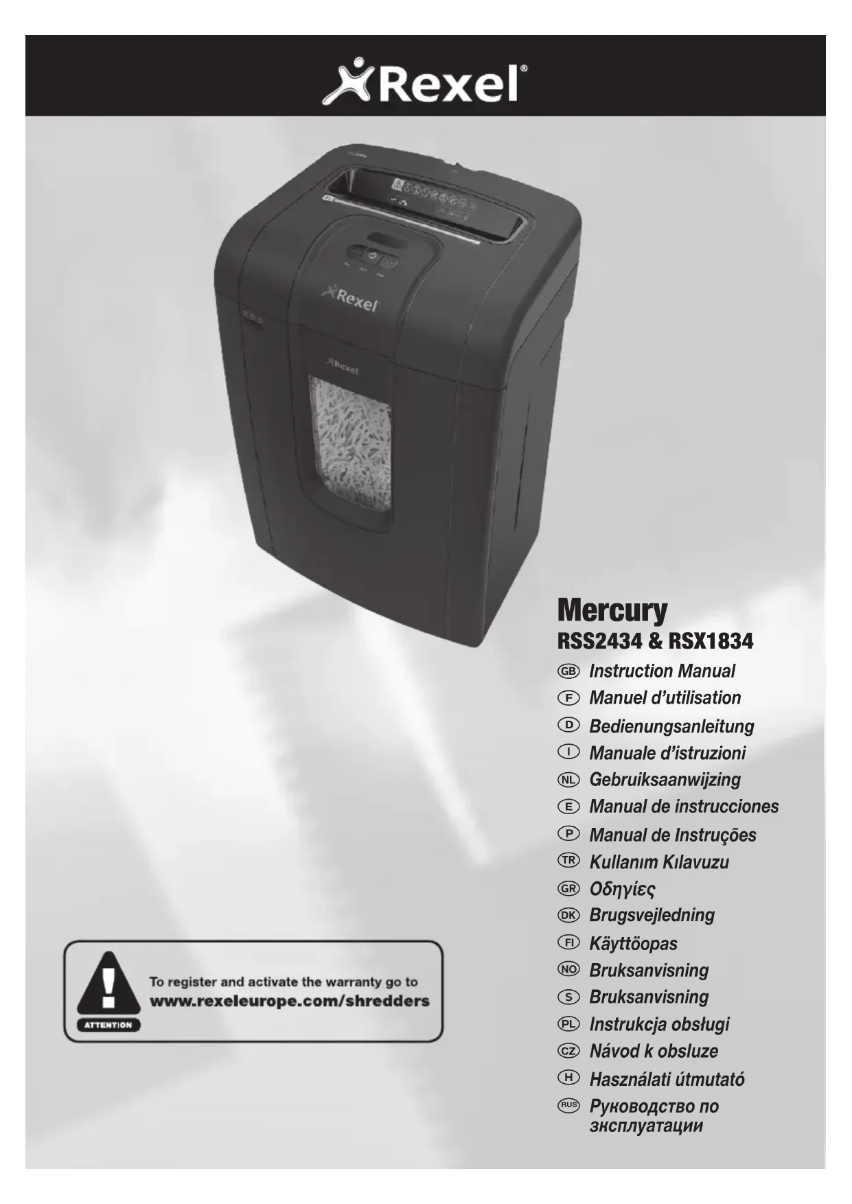Mercury RSX1834 - Destructeur de document REXEL - Notice d'utilisation et mode d'emploi gratuit