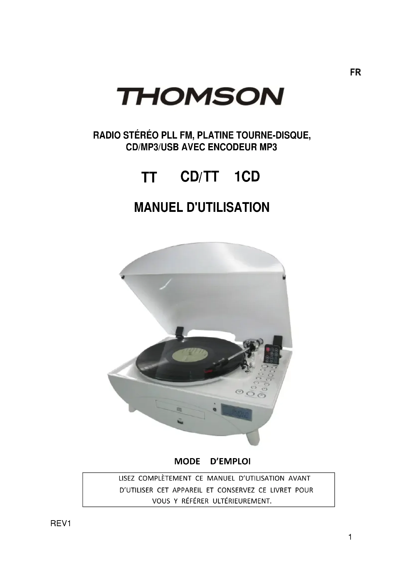 MODE D'EMPLOI TT400CD THOMSON