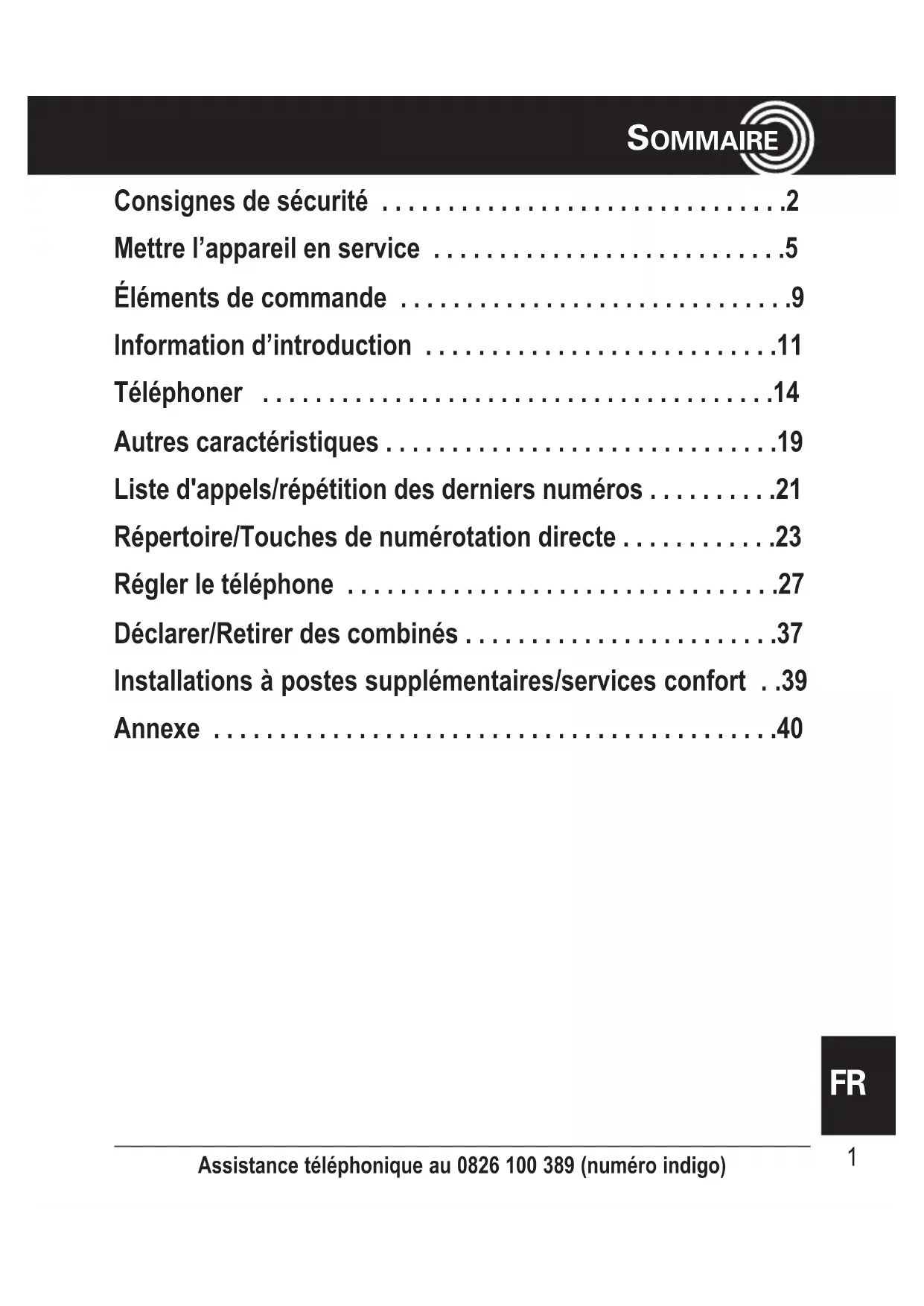 Ne s'applique que pour les téléphones comprenant au moins deux combinés, v. « Verifier le contenu de l'emballage », page 5. Assistance téléphonique au 0826 100 389 (numéro indigo)