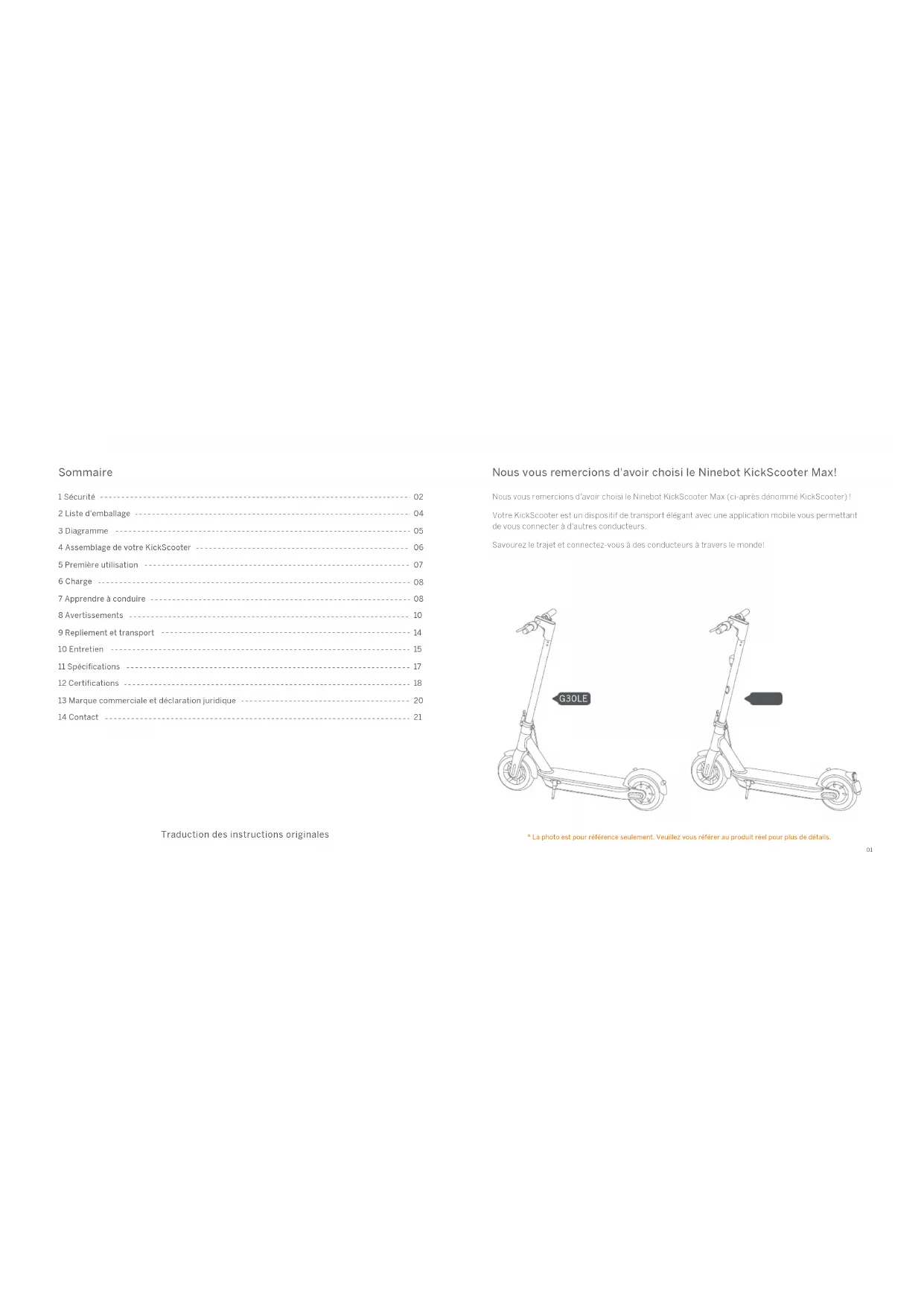 - La photo est pour référence seulement. Veuillez vous référer au produit réel pour plus de détails. G30LE G30LD02 03 1 Sécurité