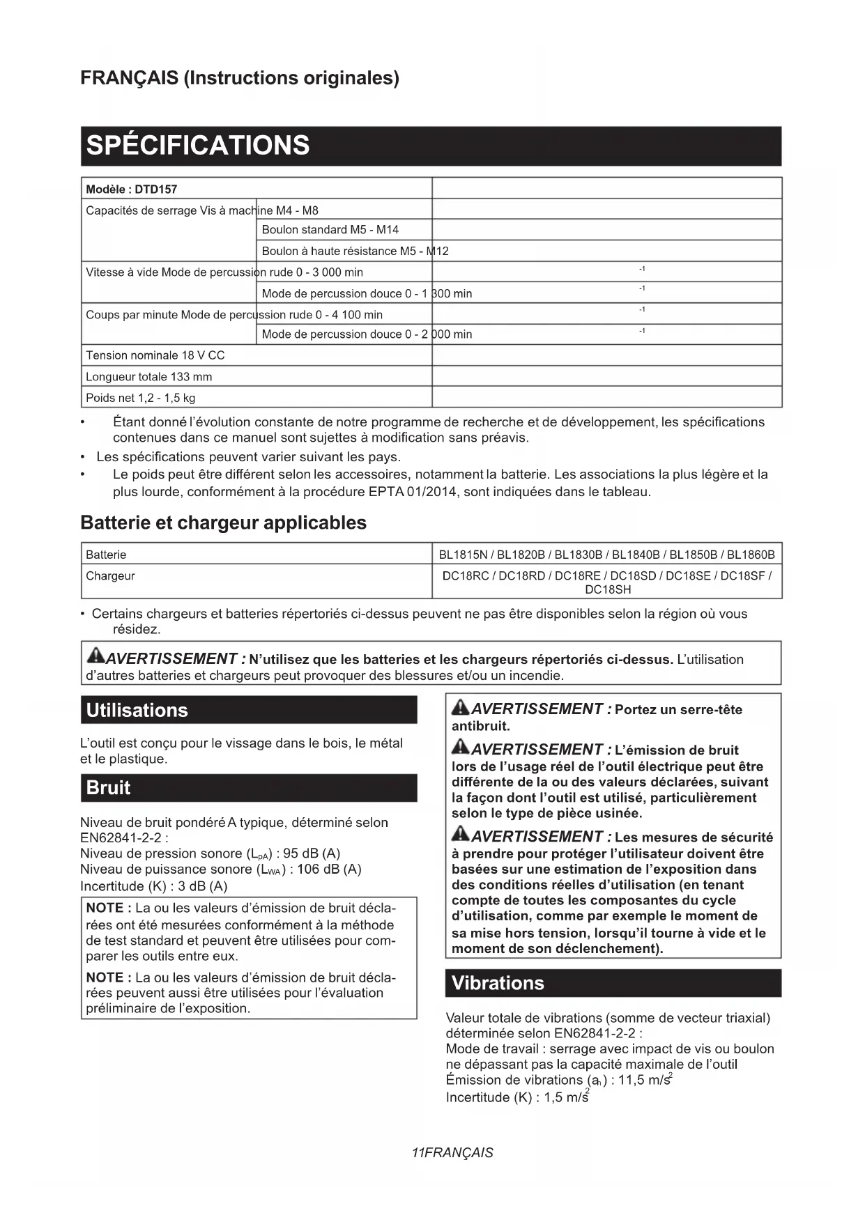 MODE D'EMPLOI DTD157Z MAKITA