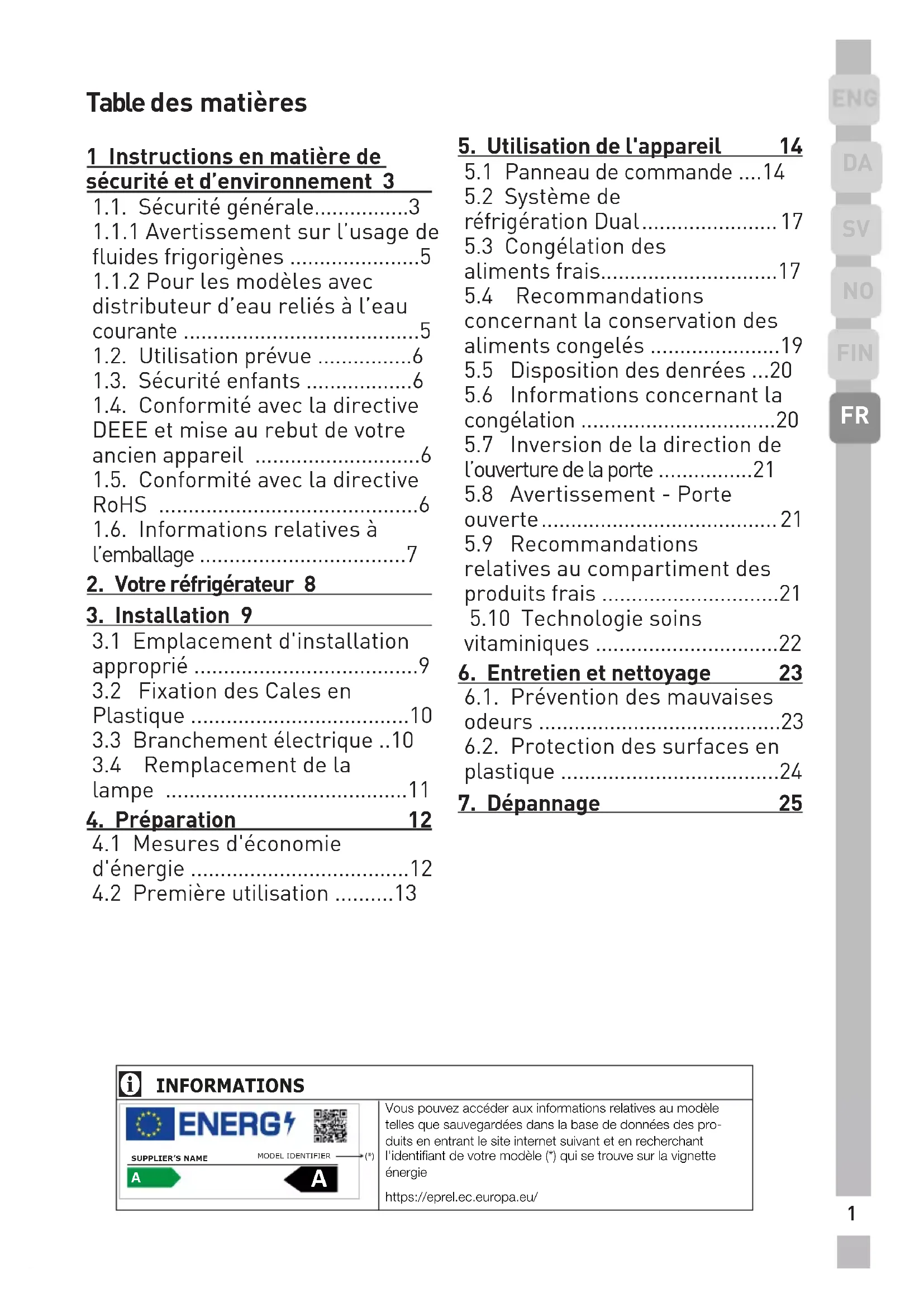 réfrigération Dual .......................17