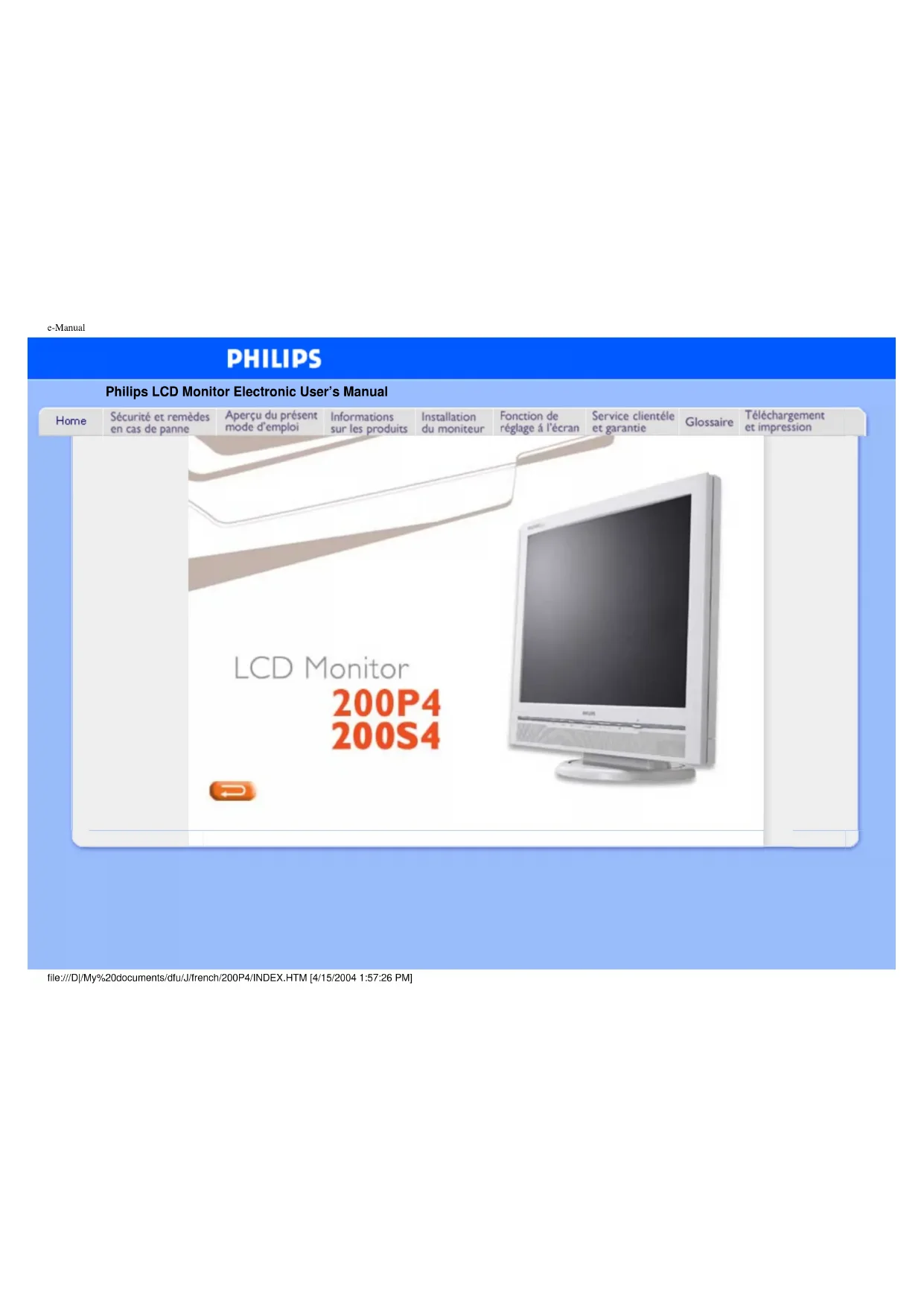 Retrouvez gratuitement la notice de l'appareil 200P4VG PHILIPS au format PDF.