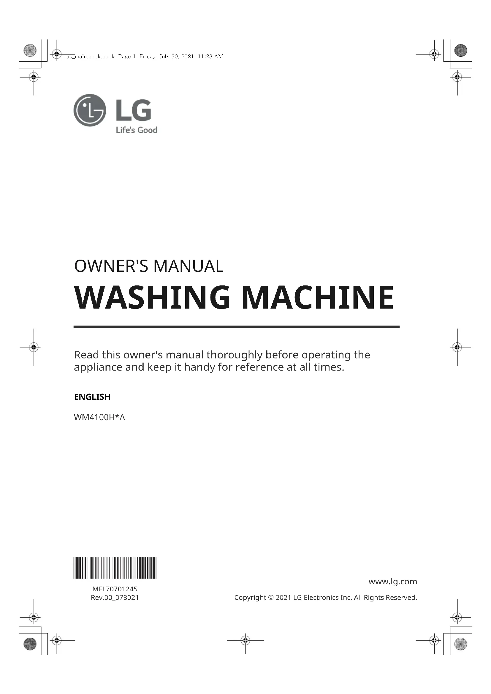 WM4100HBA - Machine à laver LG - Notice d'utilisation et mode d'emploi gratuit