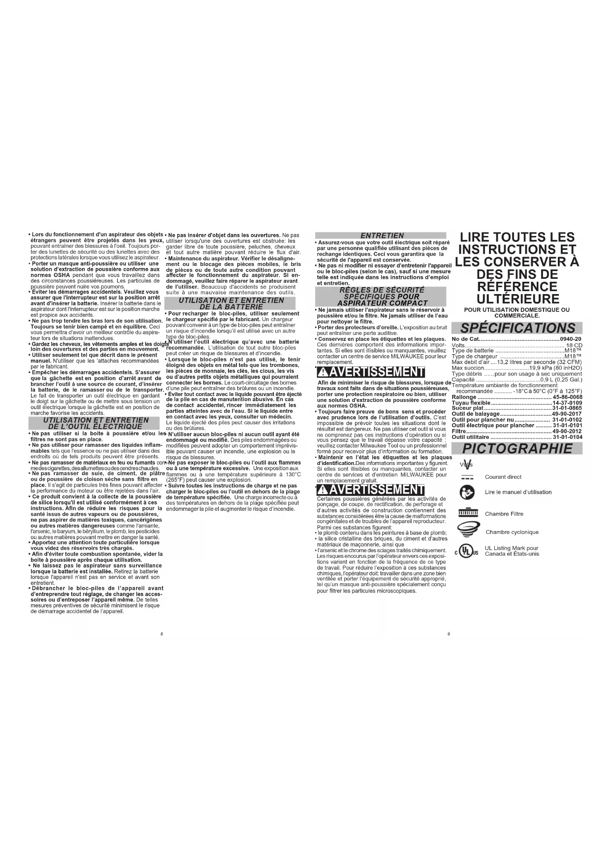 094020 - Aspirateur MILWAUKEE - Notice d'utilisation et mode d'emploi gratuit