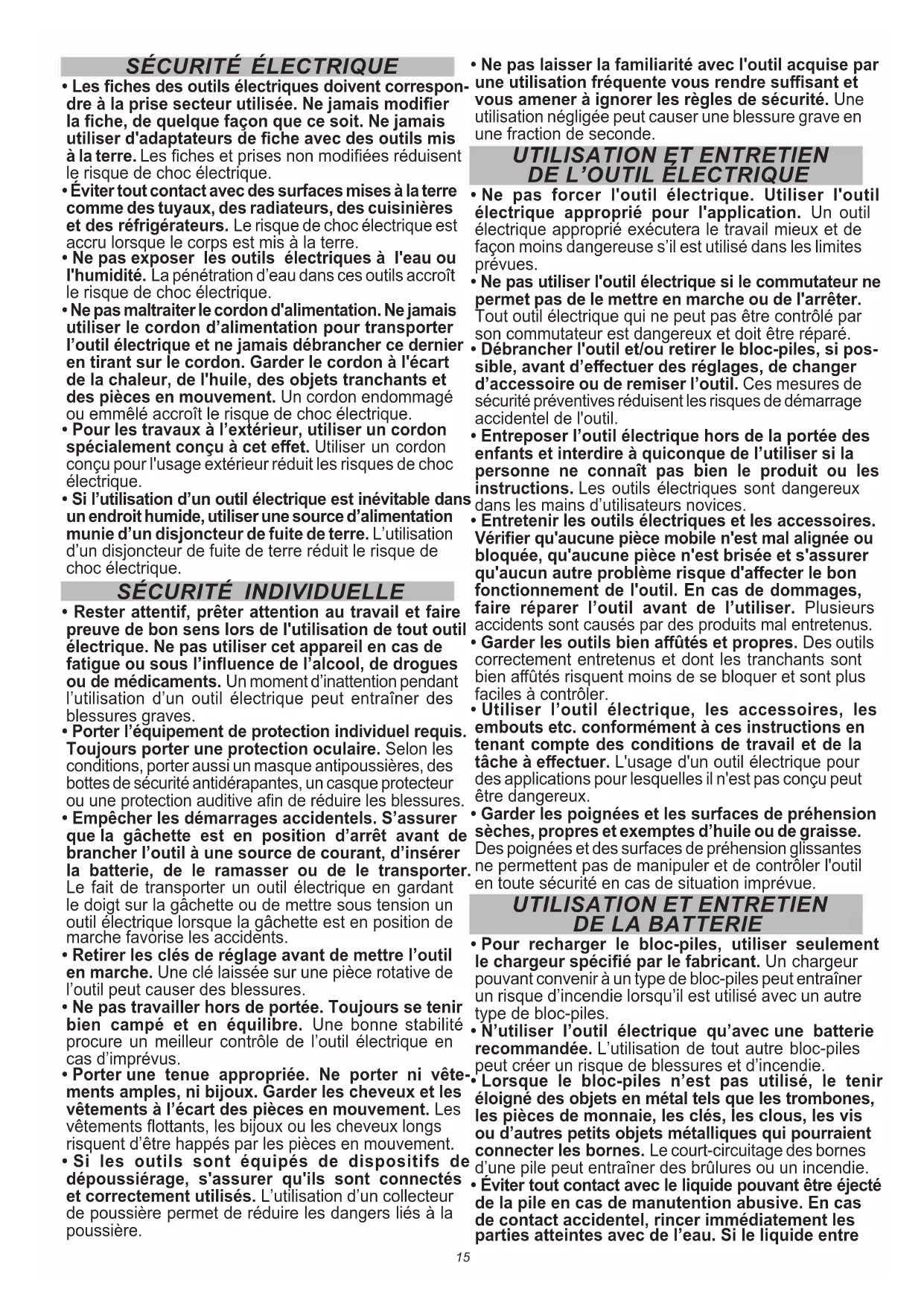 - S’assurer que les enfants et les curieux se trou- vent à une bonne distance au moment d’utiliser un outil électrique. Les distractions peuvent causer une perte de contrôle.15