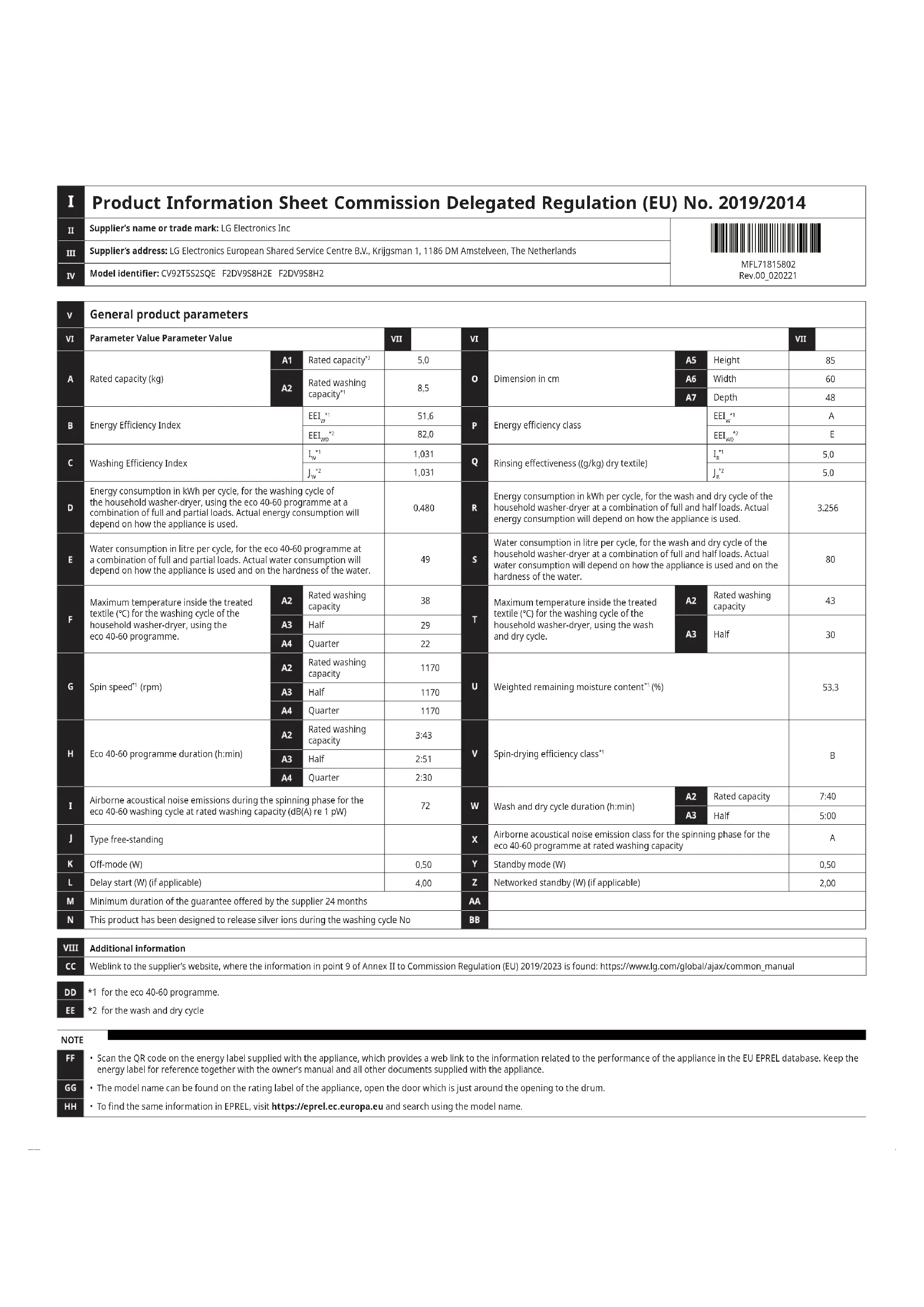 Retrouvez gratuitement la notice de l'appareil F2DV9S8H2E LG au format PDF.