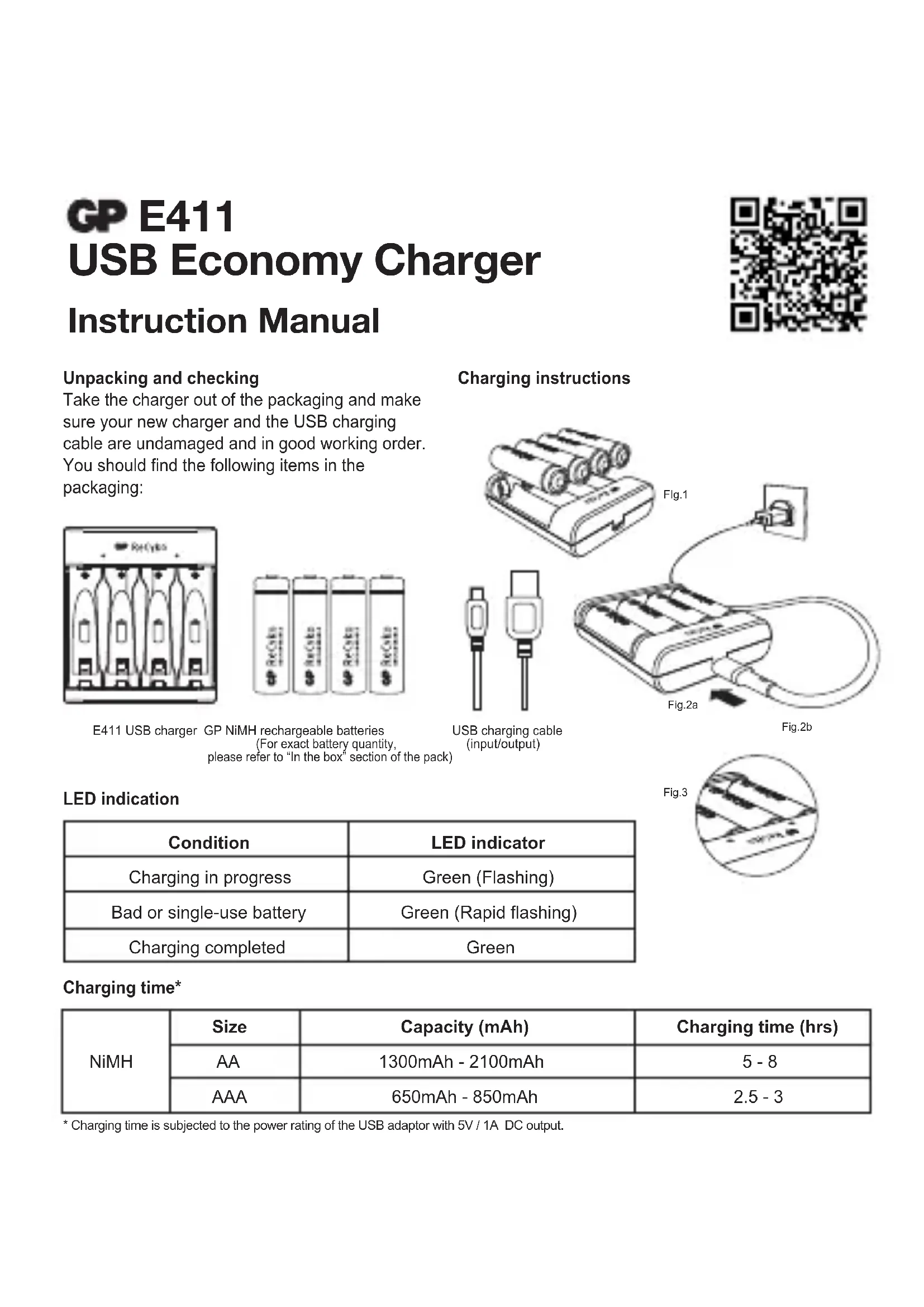Retrouvez gratuitement la notice de l'appareil E411 GP BATTERIES au format PDF.