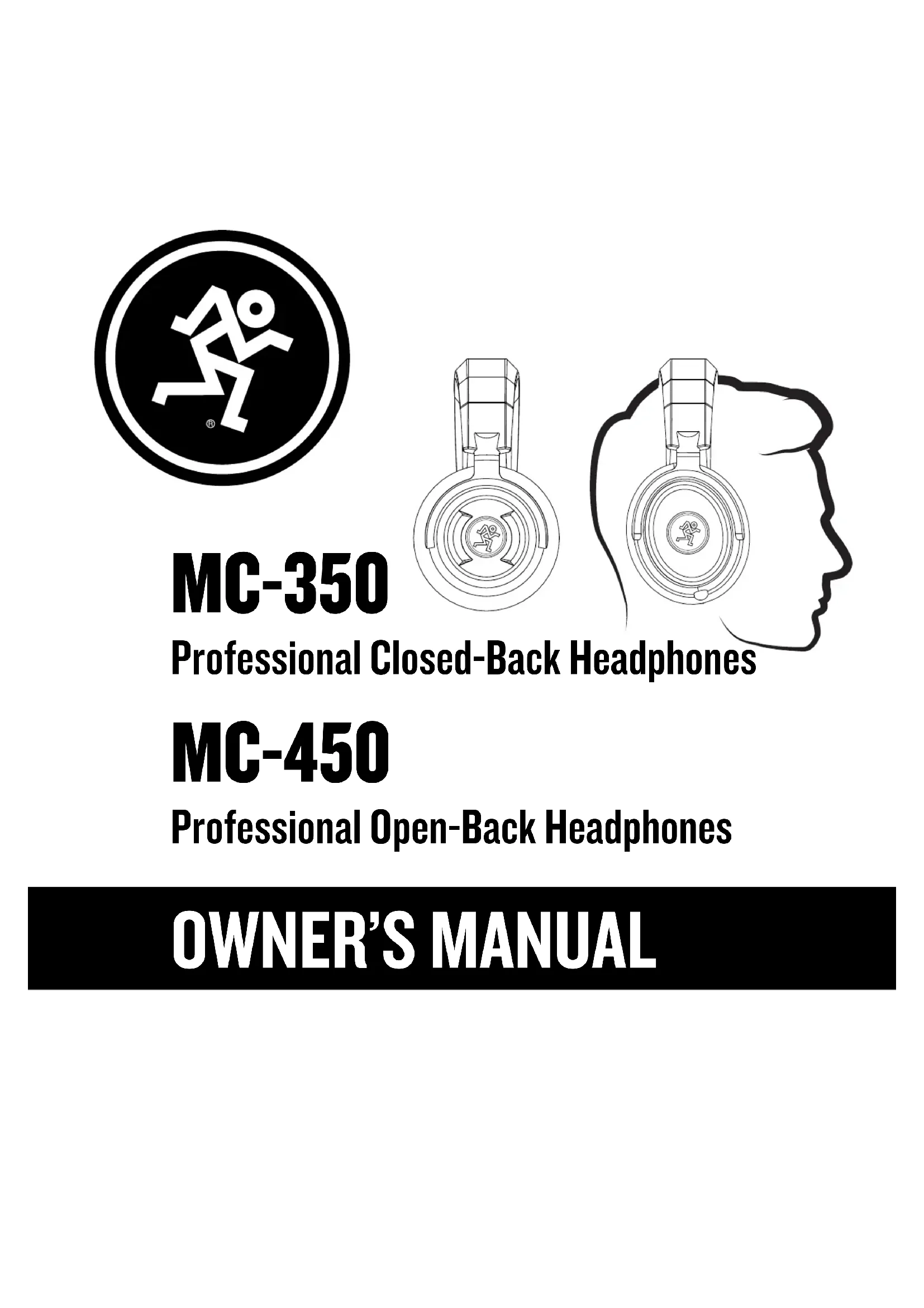 Cette garantie limitée du produit (“Garantie du Produit”) est fournie par LOUD Audio, LLC (“LOUD”)et est applicable aux produits achetés aux états-Unis ou au Canada chez un revendeur ou fournisseur agréé par LOUD. La Garantie du Produit n’est valable que pour l’acheteur original du produit (ci-après appelé “l’Acheteur,” “vous” ou “votre”).Pour les produits achetés en dehors des USA ou du Canada, consultez www.mackie.com pour trouver les informations de contact de votre distributeur local ainsi que des informations sur la couverture de la garantie fournie par le distributeur de votre marché local.LOUD garantit à l’Acheteur que le Produit est exempt de tout défaut de matériaux et de fabrication pour une utilisation normale pendant la période de garantie. Si le Produit ne se conforme pas à la garantie mentionnée ici pendant la période de la garantie, LOUD ou son représentant agréé s’engage, à son choix, à réparer ou à remplacer le Produit défectueux, à considérer que l’Acheteur signale le défaut durant la Période de Garantie à la Société sur : www.mackie.com ou en appelant le support technique de LOUD au 1.800.898.3211 (appel gratuit aux états-Unis et au Canada) aux heures ouvrables normales, heure du Pacifique, à l’exception des week ends et pendant les vacances de LOUD. Merci de conserver le ticket de caisse original daté comme preuve de la date d’achat. Il vous sera demandé pour tout service de garantie. Pour les termes et conditions complets, ainsi que pour la durée spécifique de la garantie pour ce Produit, consultez www.mackie.com.La Garantie du Produit, conjointement à votre facture ou reçu, ainsi que les termes et conditions mentionnés sur www.mackie.com constituent le contrat intégral, et supplantent tout accord préalable entre LOUD et l’Acheteur sur l’objet de cet accord. Aucun avenant, modification ou désistement des dispositions de cette Garantie du Produit ne sera valide sauf mention écrite par la partie responsable par la présente. Conservez vos tickets de caisse dans un endroit sûr. Durée, en heures par jour Niveau sonore8 90 dB6 92 dB4 95 dB3 97 dB2 100 dB1,5 102 dB1 105 dB0,5 110 dB0,25 ou moins115 dBEINLEITUNG Die Kopfhörer der MC-Serie sind die konsequente Fortsetzung unserer Studiomonitortradition und bieten mit exzellenter Transparenz, Präzision und Bassansprache ein beeindruckendes Hörerlebnis. Die geschlossenen MC-350 liefern druckvollen, klaren Sound, perfekt für Studios, DJs und private Nutzung. Die offenen MC-450 sind das Topmodell der MC-Serie mit noch besserer Abbildung und sattem Bassbereich, ideal für Mixing und audiophilen Musikgenuss. Alle Modelle begeistern durch Treiber für klare, verzerrungsfreie Klänge sowie ergonomische Kopfbügel und Ohrpolster für stundenlangen Tragekomfort. Mit den Kopfhörern der MC-Serie ist der von internationalen Künstlern hoch geschätzte Mackie Studiosound überall verfügbar. FEATURES