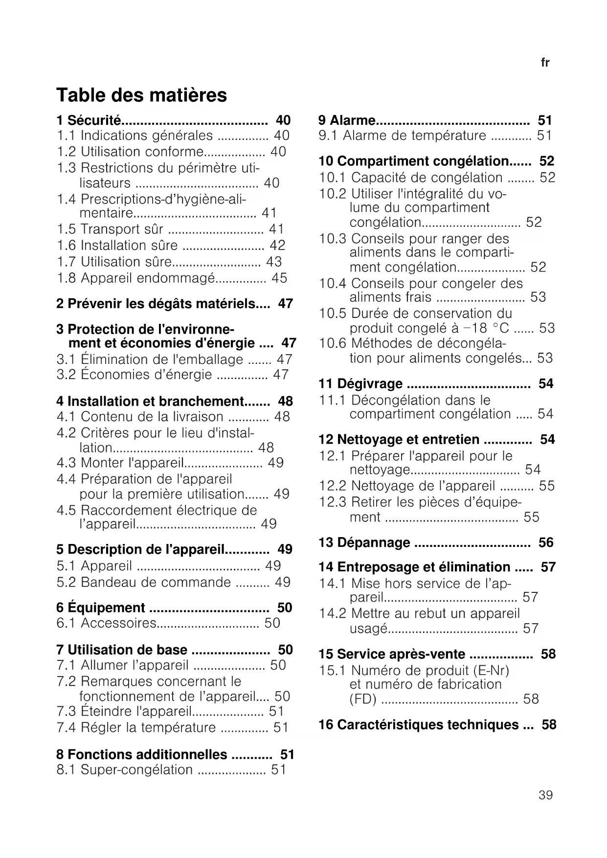tion pour aliments congelés...53 11 Dégivrage .................................54