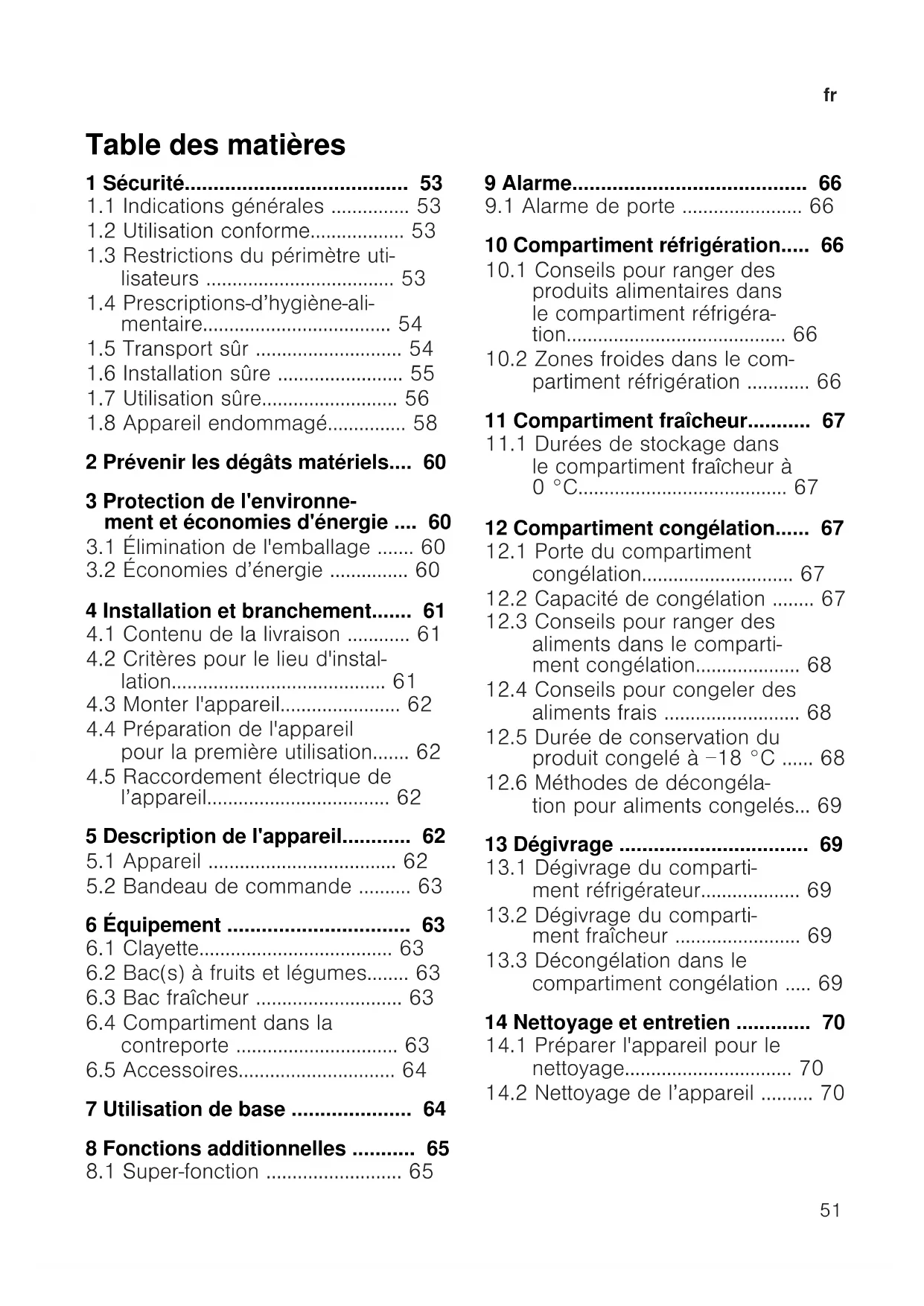 compartiment congélation .....69 14 Nettoyage et entretien .............70