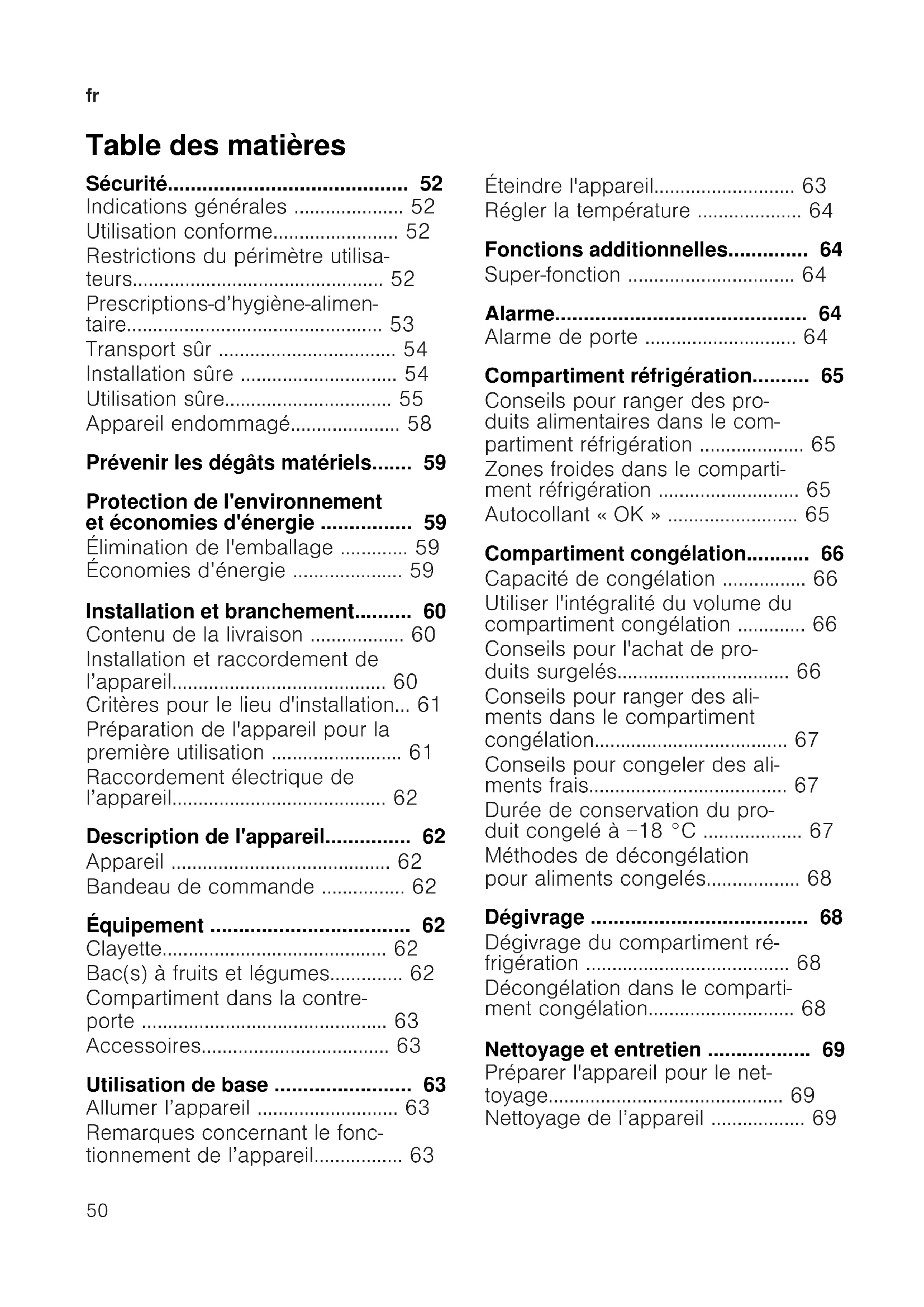 - Dégivrage p. 68