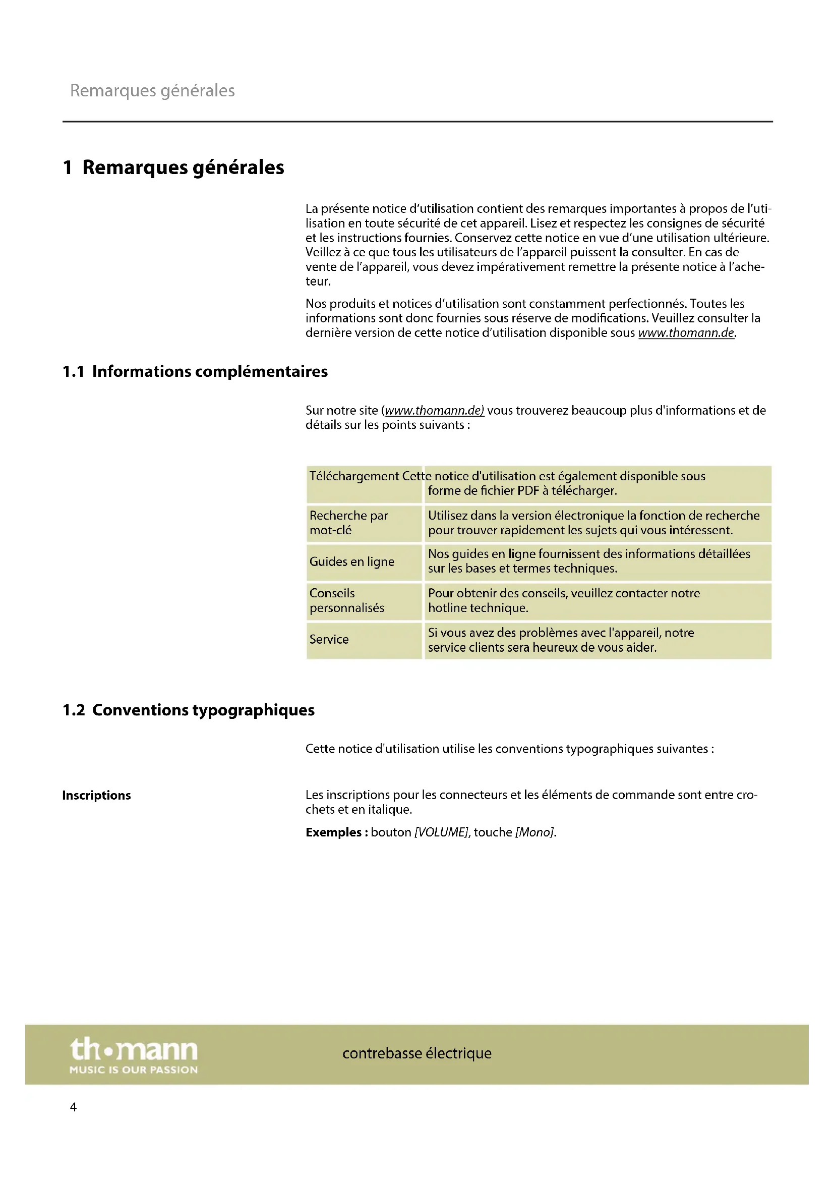 Sur notre site ( www.thomann.de) vous trouverez beaucoup plus d'informations et de détails sur les points suivants : Téléchargement Cette notice d'utilisation est également disponible sous forme de chier PDF à télécharger. Recherche par mot-clé Utilisez dans la version électronique la fonction de recherche pour trouver rapidement les sujets qui vous intéressent. Guides en ligne Nos guides en ligne fournissent des informations détaillées sur les bases et termes techniques. Conseils personnalisés Pour obtenir des conseils, veuillez contacter notre hotline technique. Service Si vous avez des problèmes avec l'appareil, notre service clients sera heureux de vous aider.