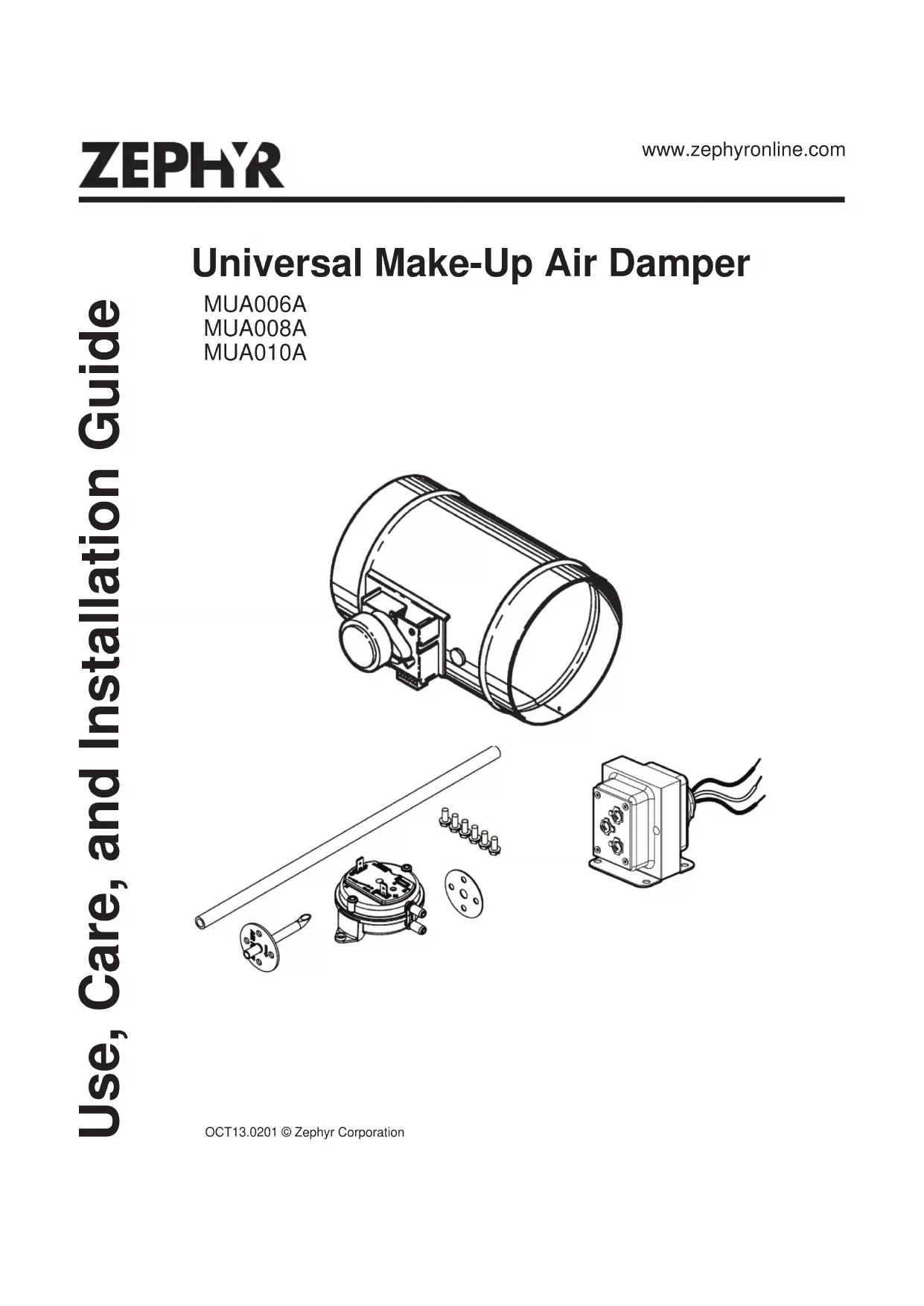 lacondensation. Il est conseillé de placer un coupe-vapeur des deux côtés de l’isolant. GARANTIE GARANTIE LIMITÉE D’UN AN ZEPHYRZEPHYR garantit à l’acheteur original que les produits vendus en vertu de la présente sont libres de tout vice de matériau ou de fabrication pour une période d’un an à compter de la date d’achat originale. CETTE GARANTIE NE COMPORTE AUCUNE AUTRE GARANTIE, EXPRESSE OU TACITE, Y COMPRIS, MAIS SANS S’Y LIMITER, LES GARANTIES TACITES DE VALEUR MARCHANDE OU D’ADAPTATION À UN USAGE PARTICULIER.Durant cette période d’un an, ZEPHYR réparera ou remplacera gratuitement, àsadiscrétion, tout produit ou toute pièce jugés défectueux dans des conditions normales d’utilisation.CETTE GARANTIE NE S’APPLIQUE PAS AUX TUBES FLUORESCENTS ET AUX DÉMARREURS, NI AUX AMPOULES HALOGÈNES OU INCANDESCENTES, FUSIBLES, FILTRES, CONDUITS, CAPUCHONS DETOIT, CAPUCHONS MURAUX ET AUTRES ACCESSOIRES POUR CONDUITS. Cette garantie ne couvre pas (a) les frais d’entretien ou de service normaux ni (b) tout produit ou toute pièce soumis à un abus, une négligence, un accident, un entretien ou une réparationinadéquats (autres que ceux effectués par ZEPHYR), une mauvaise installation ou une installation contraire aux instructions recommandées. La durée de toute garantie tacite est limitée à la période d’un an stipulée pour la garantieexpresse. Certains territoires ou provinces interdisant de limiter la durée d’une garantie tacite, la limitation ci-dessus peut ne pas s’appliquer à votre situation.L’OBLIGATION POUR ZEPHYR DE RÉPARER OU DE REMPLACER LE PRODUIT, À SADISCRÉTION, CONSTITUE LE SEUL RECOURS DE L’ACHETEUR EN VERTU DE LA PRÉSENTE GARANTIE. ZEPHYR NE PEUT ÊTRE TENUE RESPONSABLE DES DOMMAGES INDIRECTS OU CONSÉCUTIFS NI DES DOMMAGES-INTÉRÊTS PARTICULIERS DÉCOULANT DE L’UTILISATION OU DU RENDEMENT DU PRODUIT. Certains territoires ou provinces ne permettant pas la limitation ou l’exclusion des dommages indirects ouconsécutifs, la limitation ci-dessus peut ne pas s’appliquer à votre situation.La présente garantie vous confère des droits spécifiques reconnus par la loi. D’autres droits pourraient également vous être accordés selon la législation locale en vigueur. Laprésente garantie remplace toutes les autres garanties précédentes.Pour vous prévaloir de cette garantie, vous devez (a) aviser ZEPHYR à l’adresse ou au numéro de téléphone indiqués ci-dessous, (b) donner le numéro de modèle du produit et le numéro d’identification de la pièce et (c) décrire la nature de la défectuosité du produit ou de la pièce. Lors de votre demande de garantie, vous devez présenter une preuve de la date d’achat originale.Zephyr Ventilation, 2277 Harbor Bay Parkway, Alameda, CA 94502www.zephyronline.com 888-880-8368MODÈLES MUA006A • MUA008A • MUA010A Page 13 EMPLACEMENT DE LA PRISE D’AIR EXTÉRIEUR La conception et l’emplacement adéquats de la prise d’air extérieur sont indispensables au bon fonctionnement et à la fiabilité du clapet pour faire pénétrer de l’air frais dans la maison. Il importe de respecter les exigences suivantes lors du positionnement de la prise d’air :
