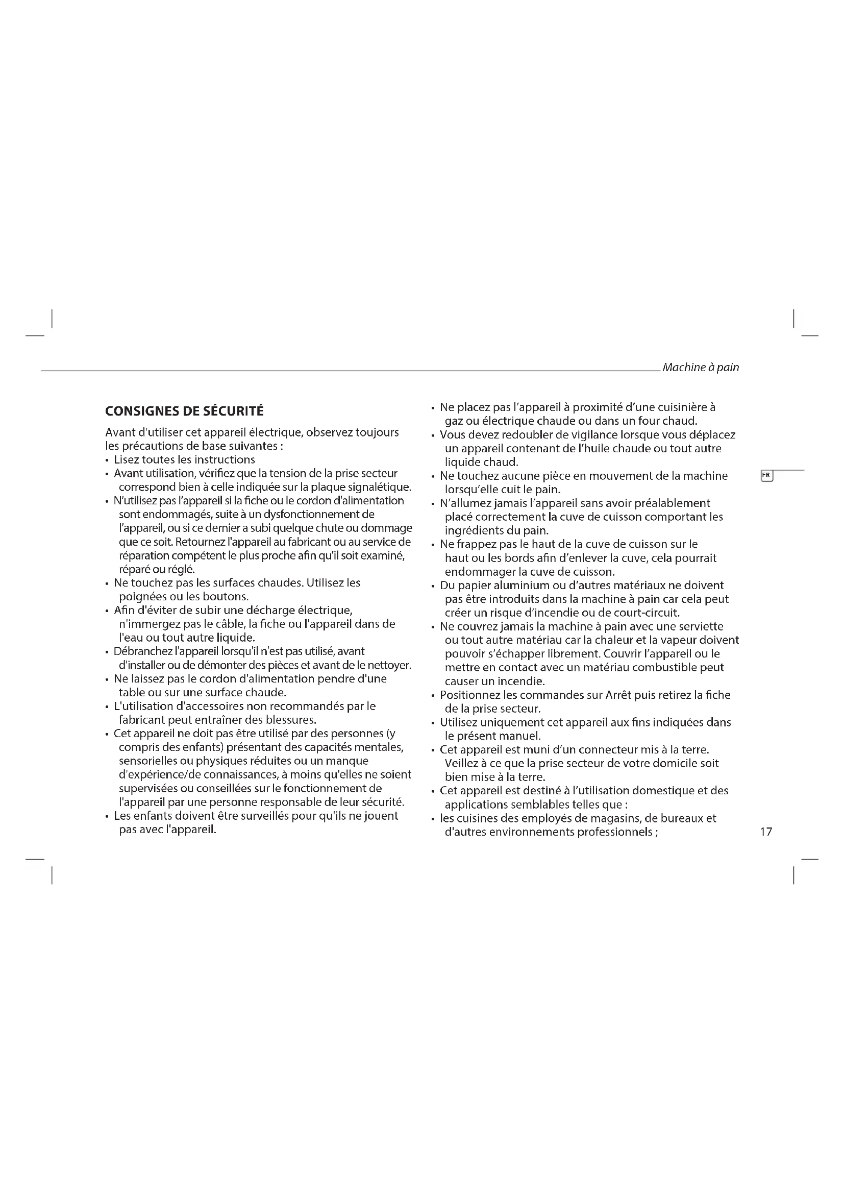 Machine à pain22 Remarque : les quantités de farine et de levure à utiliser sont indiquées dans la recette.
