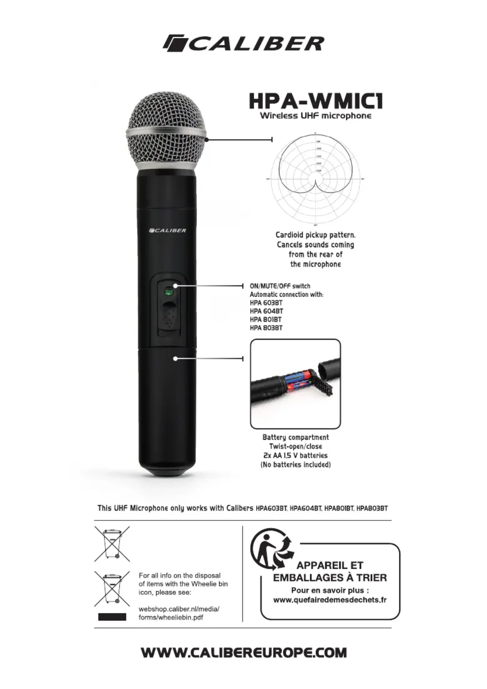 Retrouvez gratuitement la notice de l'appareil HPAWMIC1 CALIBER au format PDF.