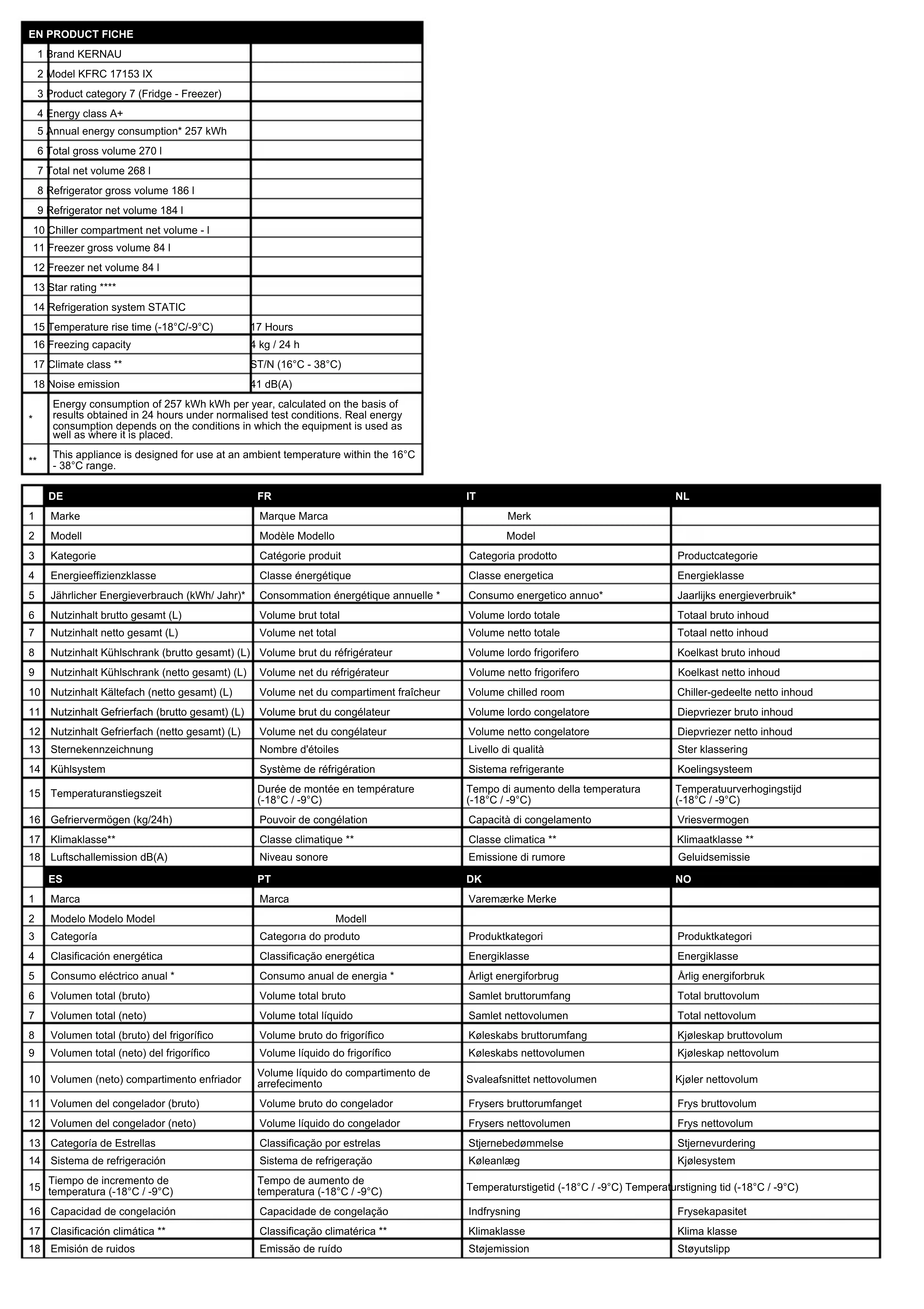 KFRC 17153 IX - Réfrigérateur Kernau - Notice d'utilisation et mode d'emploi gratuit