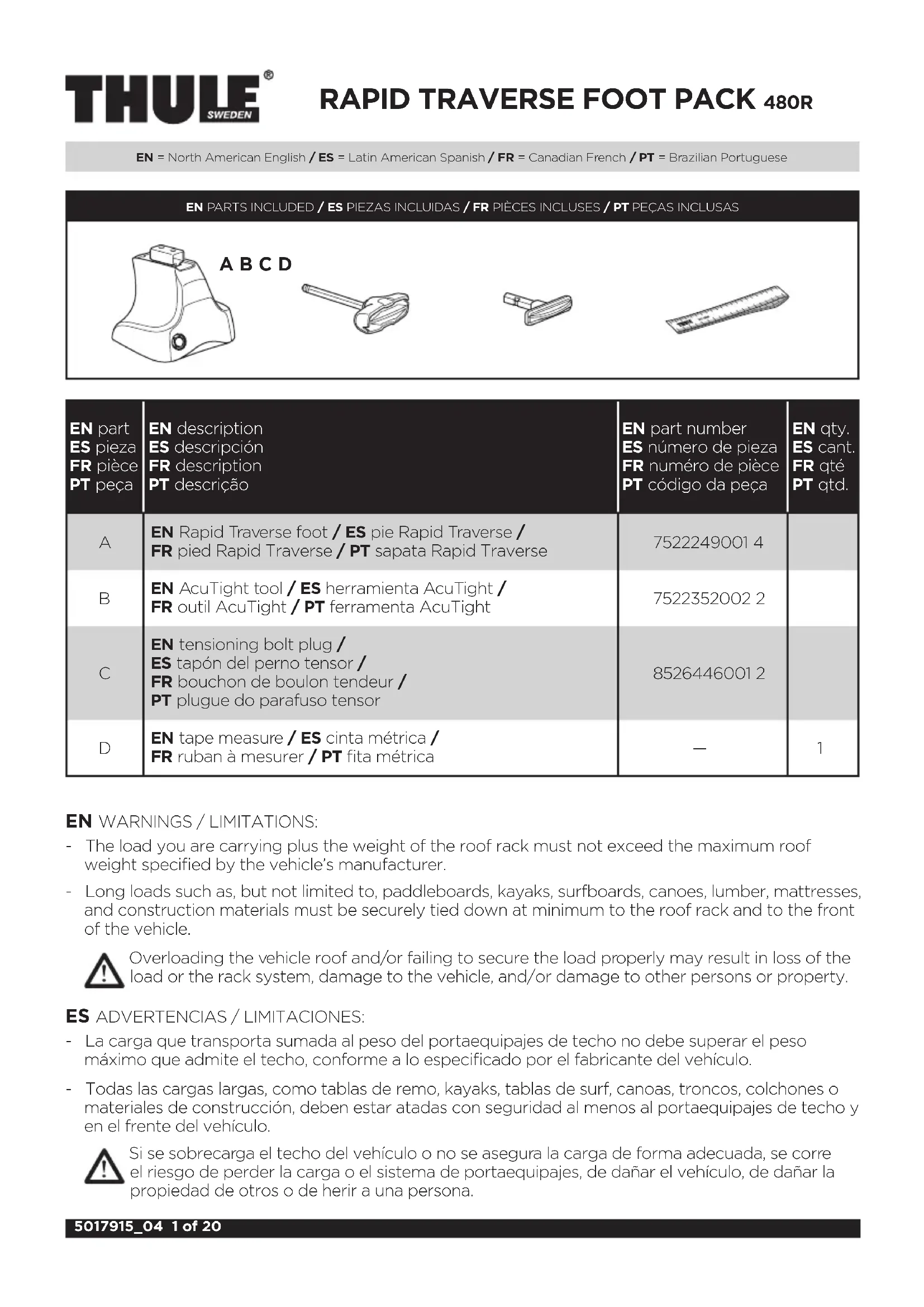 Retrouvez gratuitement la notice de l'appareil Rapid Traverse THULE au format PDF.