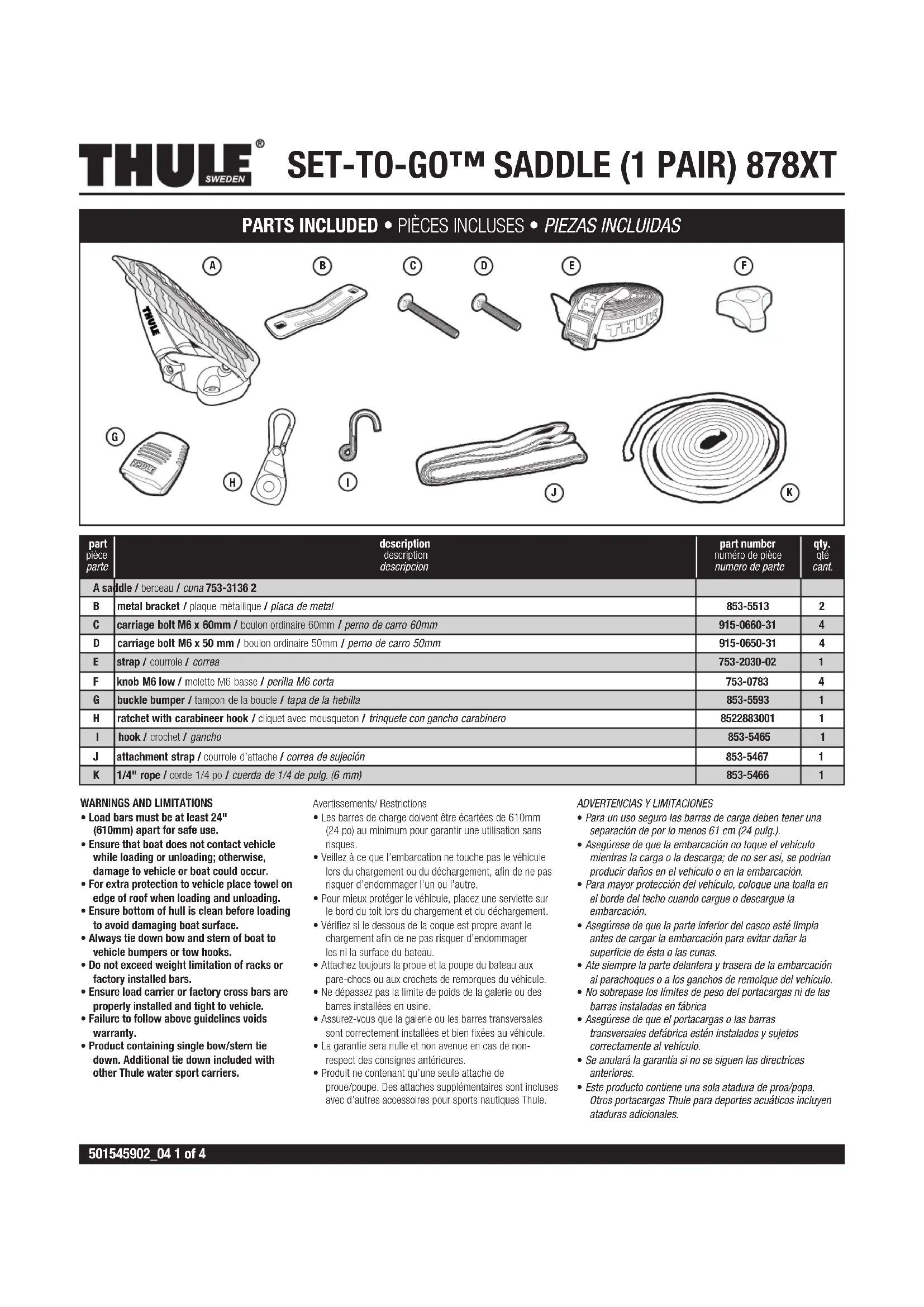 Retrouvez gratuitement la notice de l'appareil SetToGo 878XT THULE au format PDF.