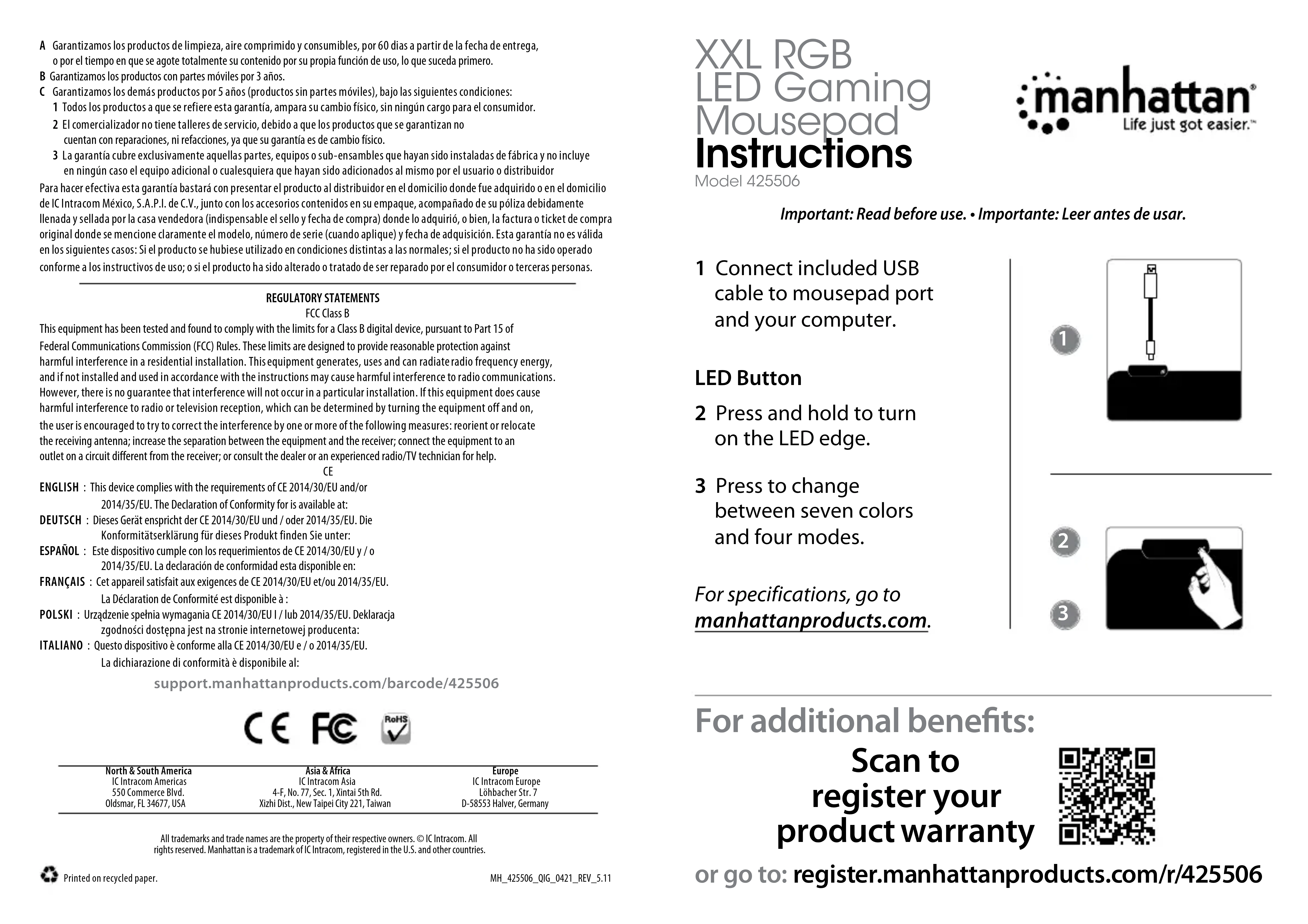 425506 - Tapis de souris gaming MANHATTAN - Notice d'utilisation et mode d'emploi gratuit
