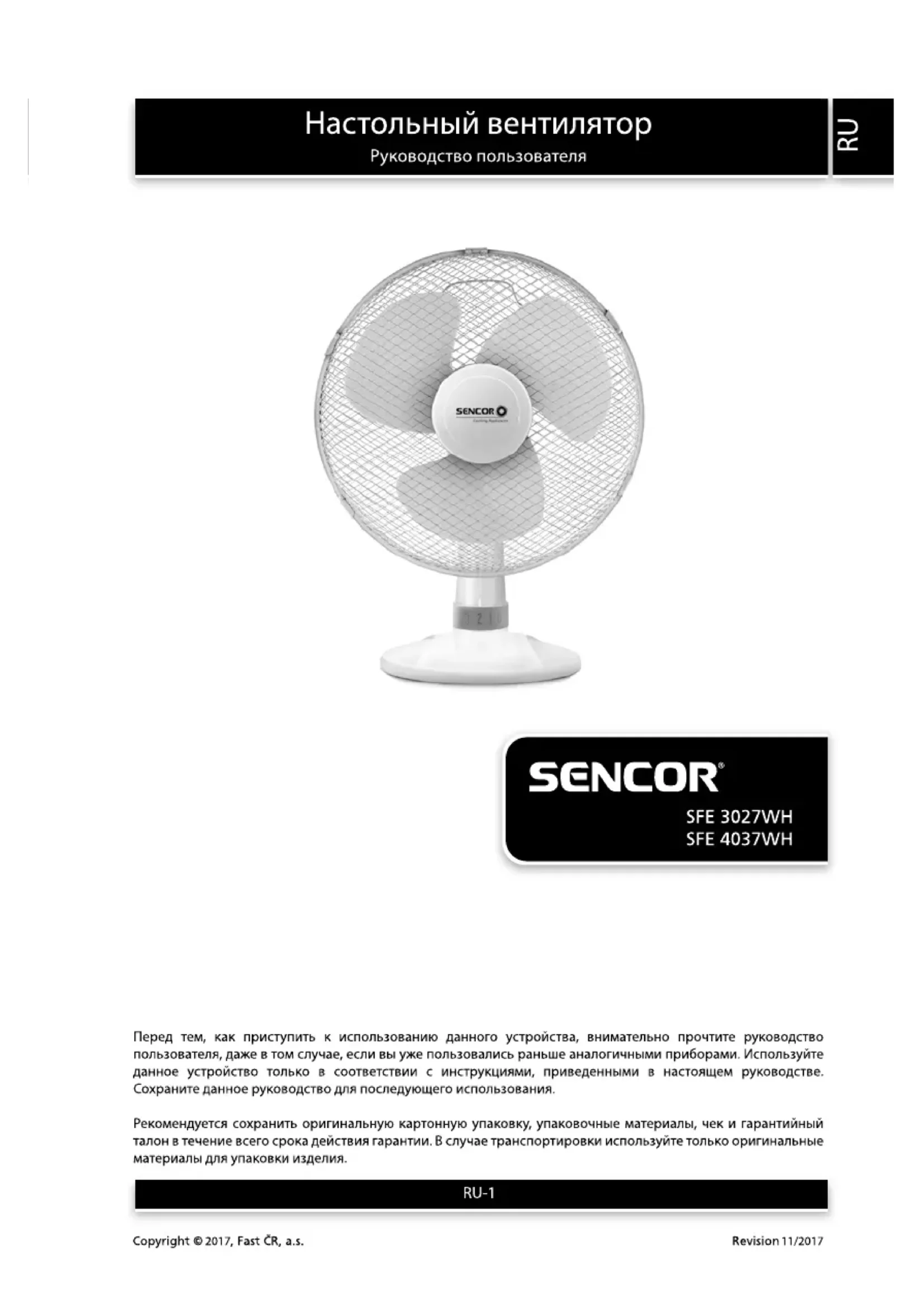 SFE 3027WH - Ventilateur SENCOR - Notice d'utilisation et mode d'emploi gratuit