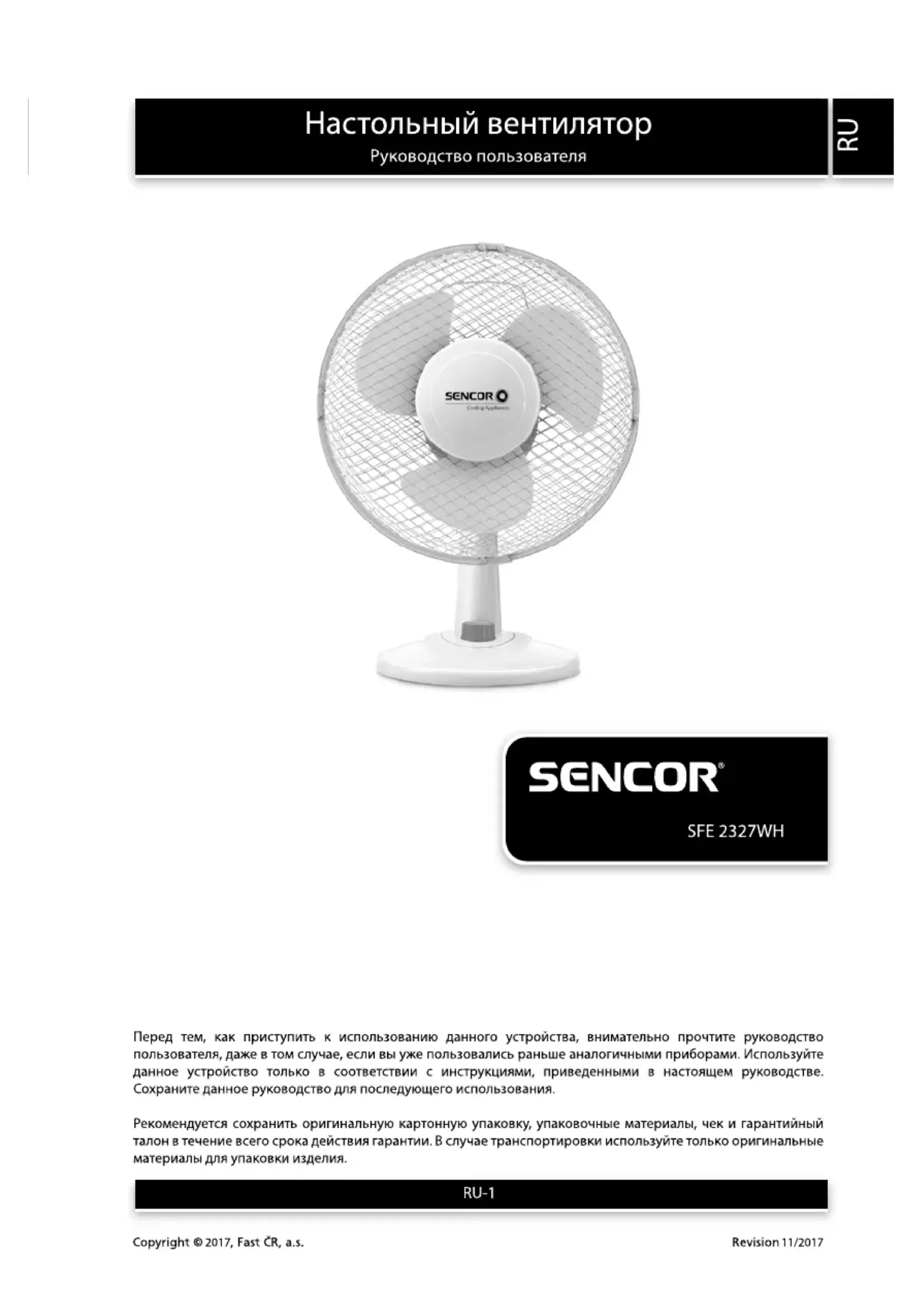 SFE 2327WH - Ventilateur SENCOR - Notice d'utilisation et mode d'emploi gratuit