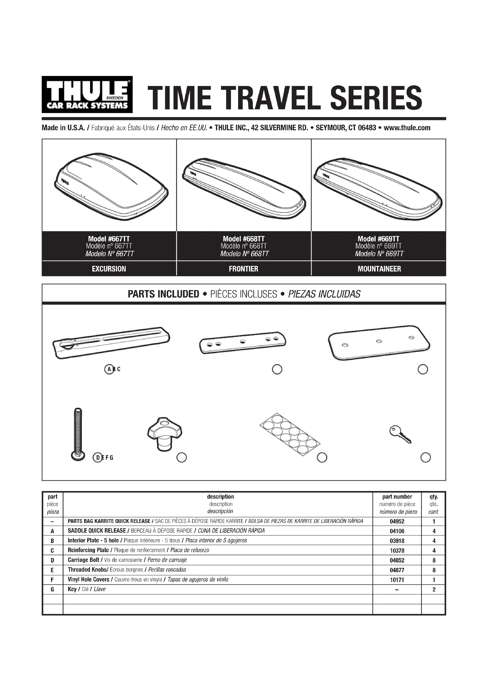 Retrouvez gratuitement la notice de l'appareil Frontier TT 668TT THULE au format PDF.