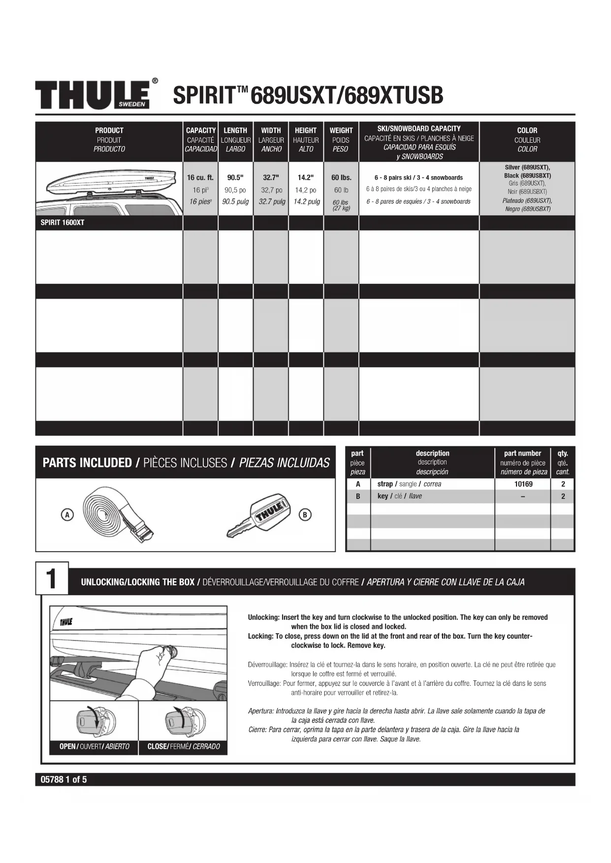 Spirit 689USXT - Coffre de toit THULE - Notice d'utilisation et mode d'emploi gratuit