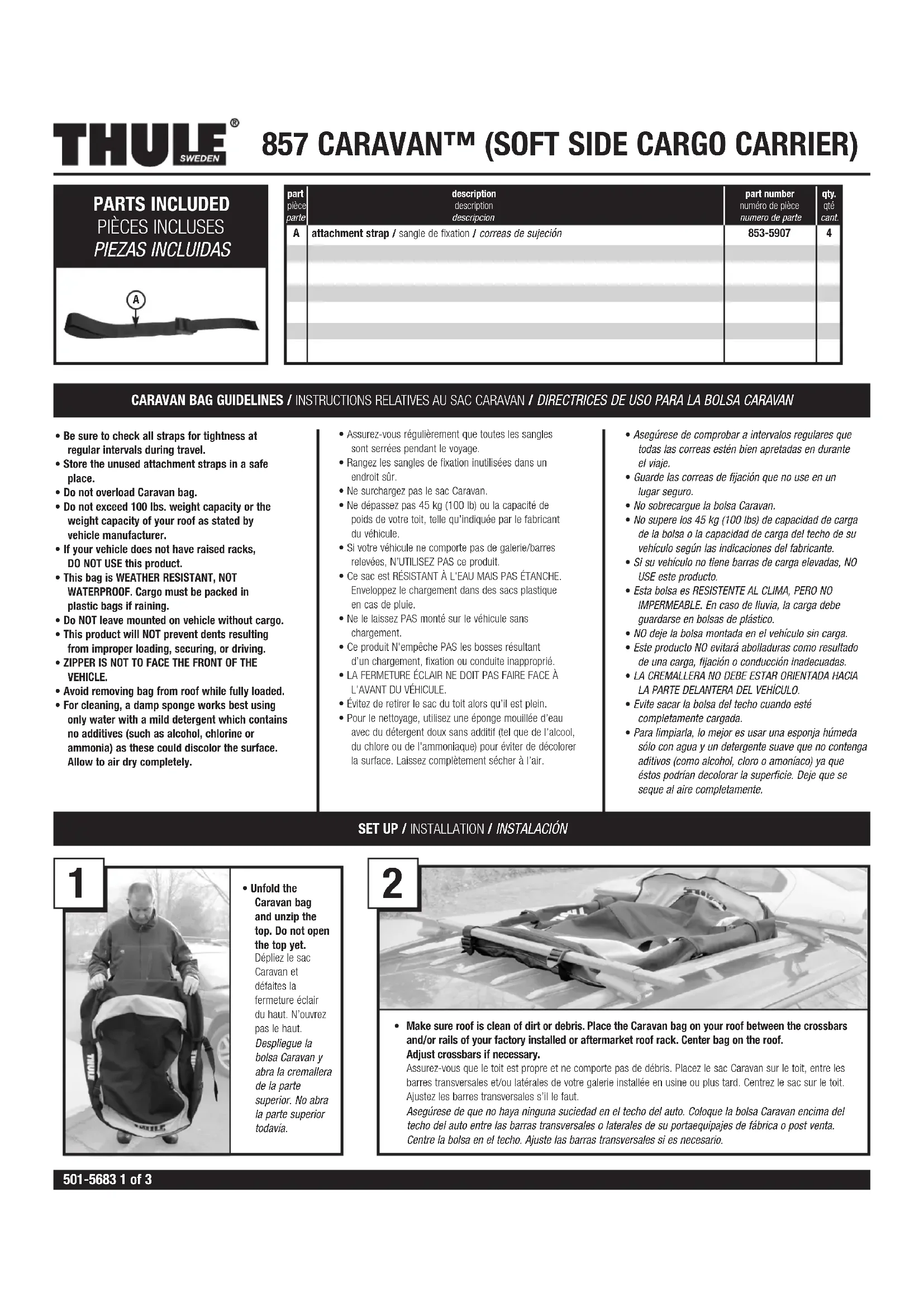 Retrouvez gratuitement la notice de l'appareil Caravan 857 THULE au format PDF.