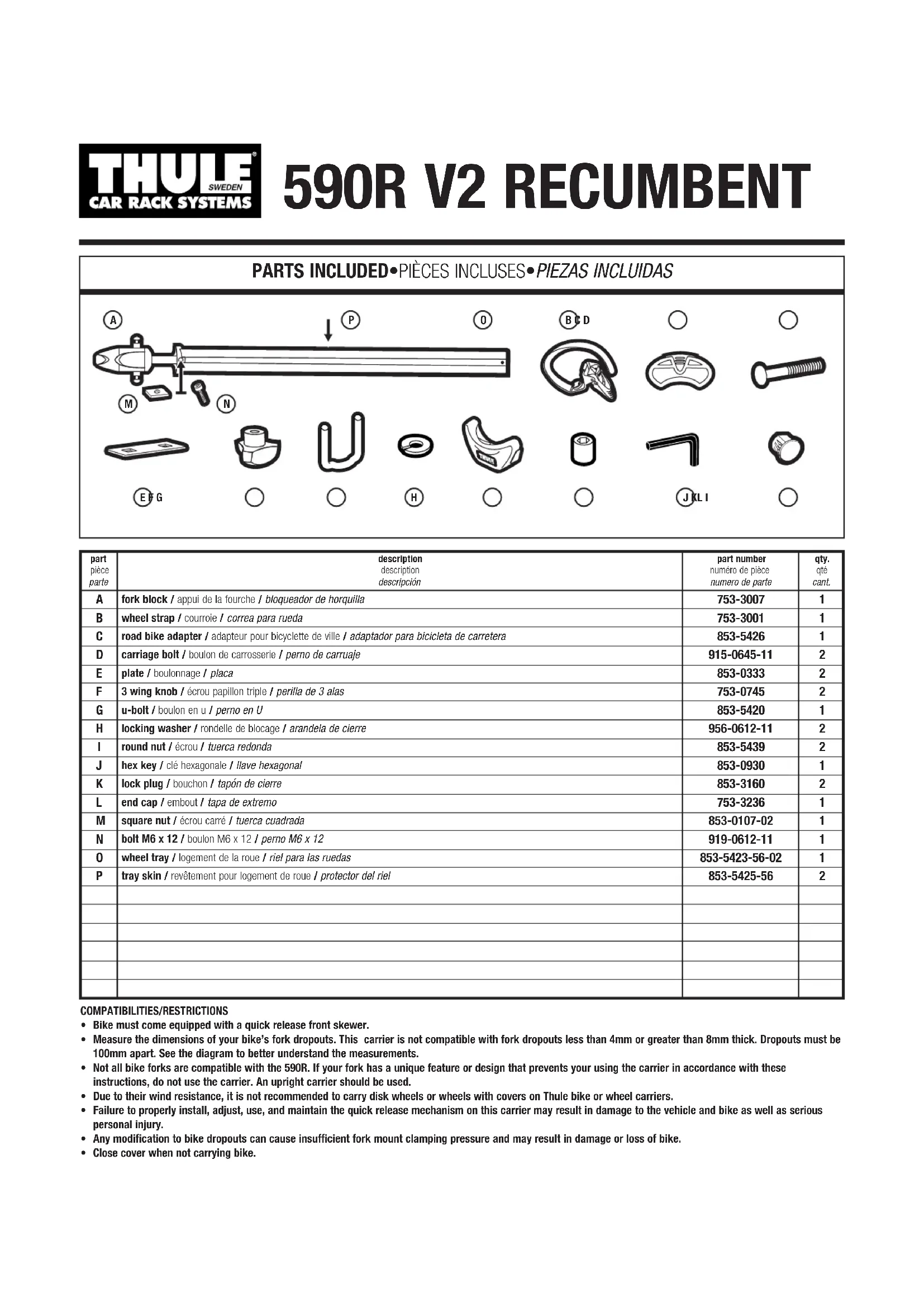 Retrouvez gratuitement la notice de l'appareil V2 Recumbent 590R THULE au format PDF.