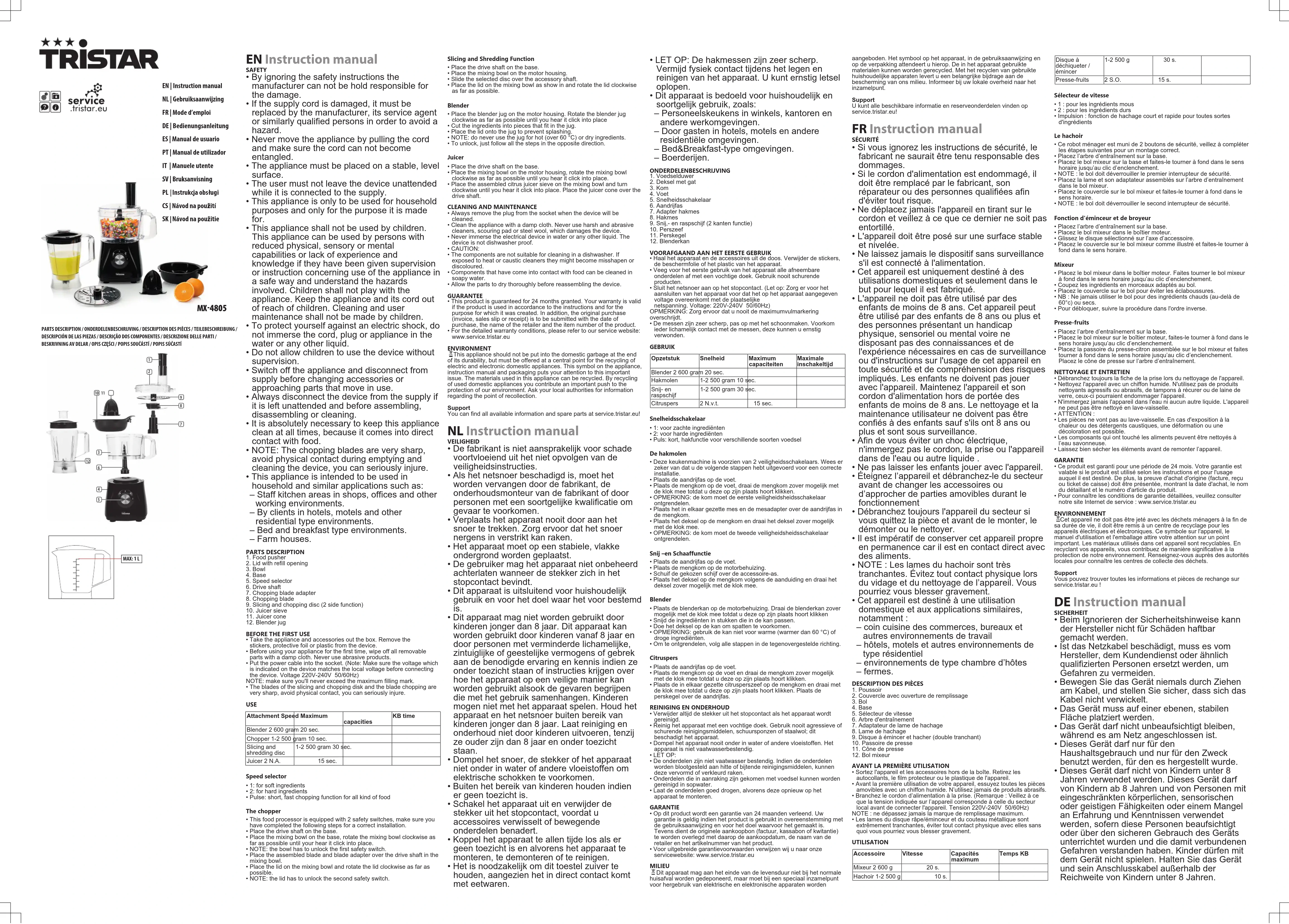 Téléchargez la notice de votre Robot ménager au format PDF gratuitement ! Retrouvez votre notice MX4805 - TRISTAR et reprennez votre appareil électronique en main. Sur cette page sont publiés tous les documents nécessaires à l'utilisation de votre appareil MX4805 de la marque TRISTAR.