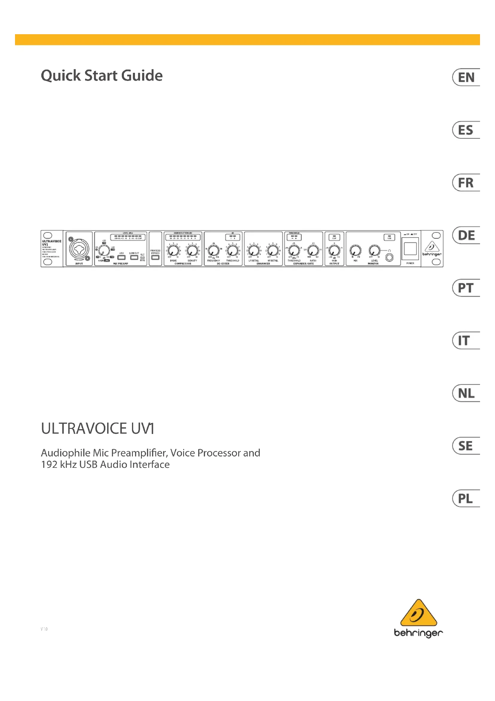 Retrouvez gratuitement la notice de l'appareil Ultravoice UV1 BEHRINGER au format PDF.