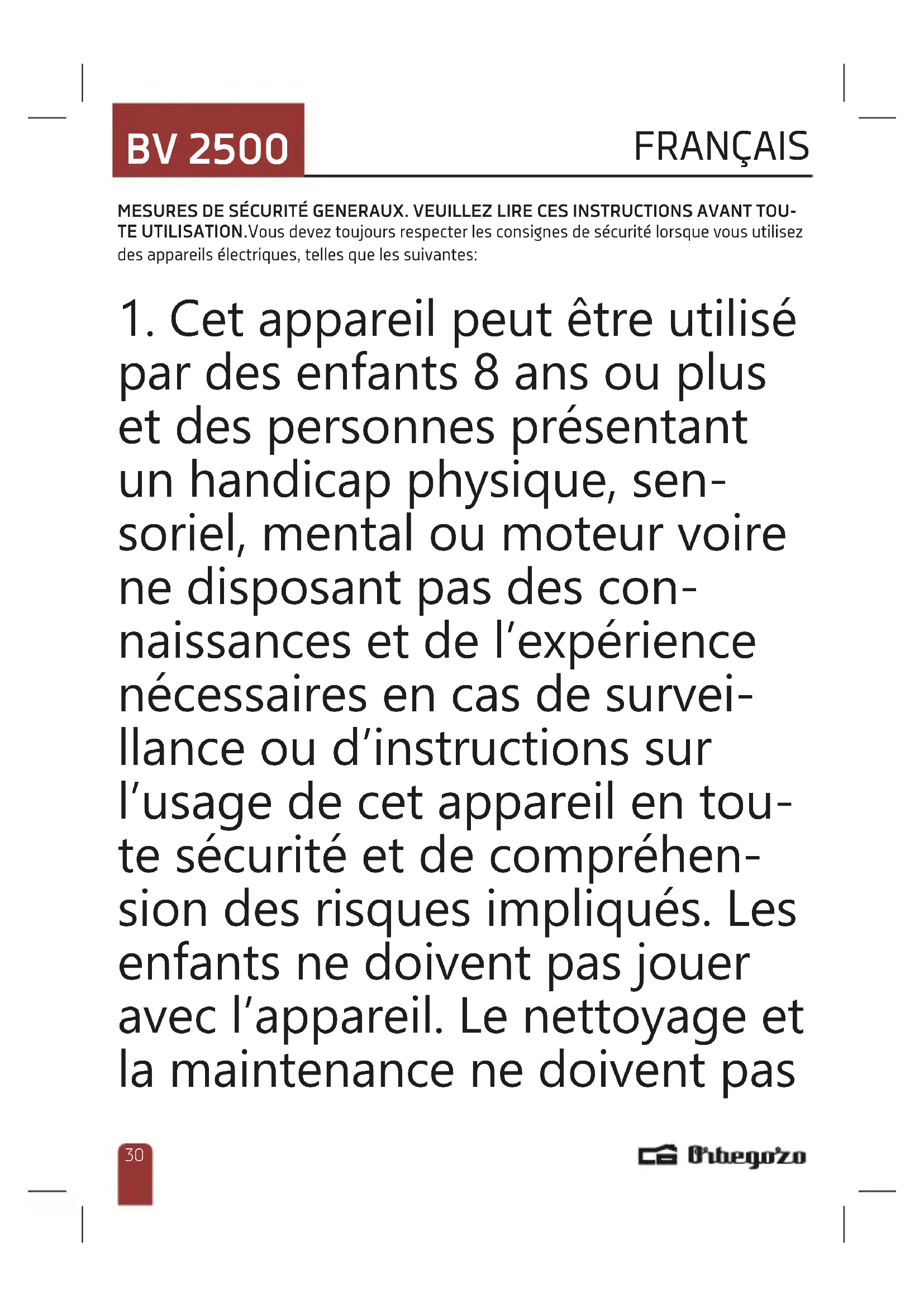MODE D'EMPLOI BV 2500 Orbegozo