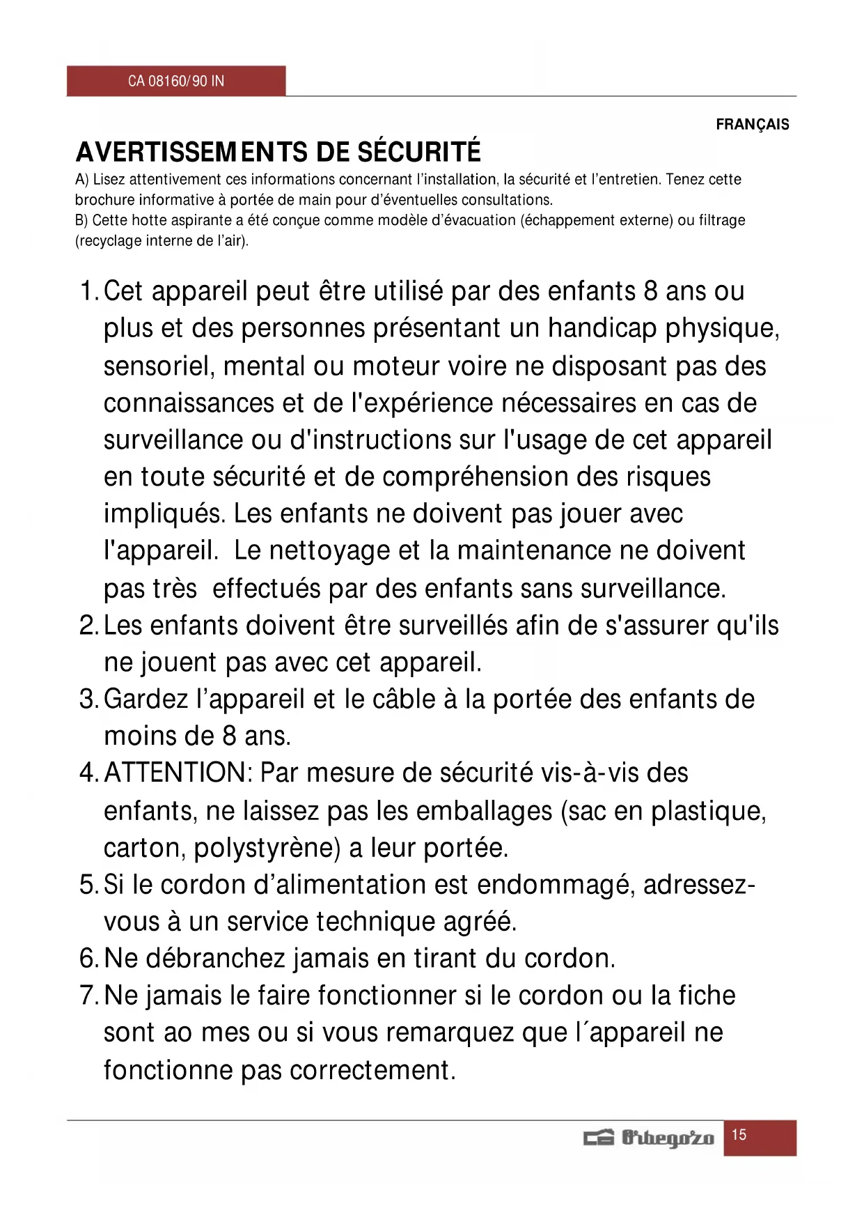 CA 08190 IN - Hotte Orbegozo - Notice d'utilisation et mode d'emploi gratuit