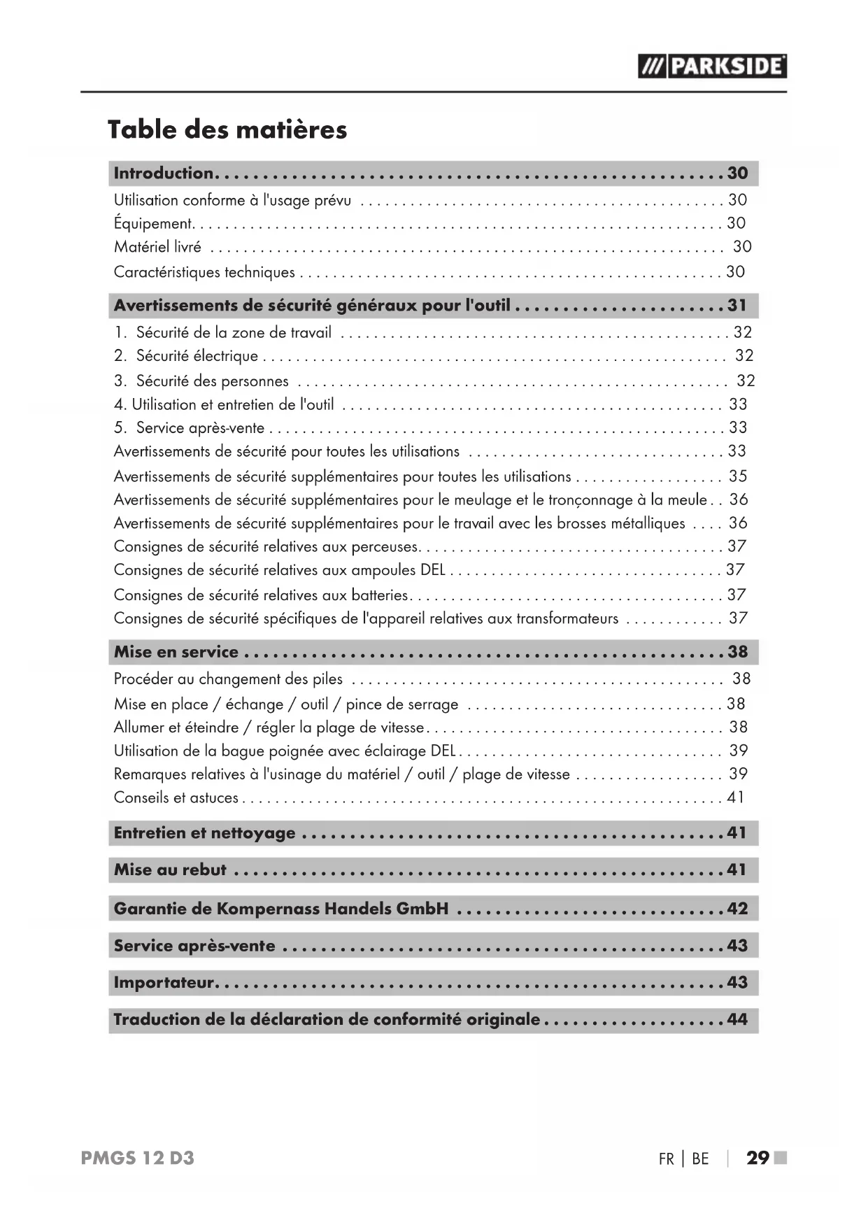 - Traduction de la déclaration de conformité originale IB_283031_PMGS12D3_LB8.indb 29 28.06.17 11:55PMGS 12 D3 ■ 30 p. 44