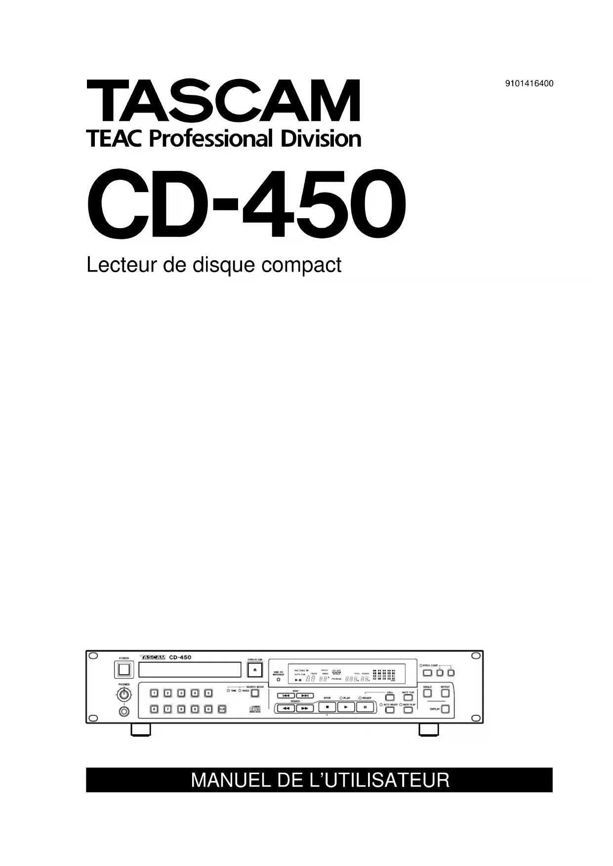 - Nous vous remercions d’avoir choisi le lecteur de disque compact TASCAM CD-450. Pour tirer le meilleur parti de votre CD-450, prenez le temps de lire ce manuel de référence. En le lisant entièrement au moins une fois, vous saurez où vous reporter pour trouver des réponses à vos questions. Ce manuel est divisé en plusieurs sections: Précautions importantes relatives à la sécurité p. 2